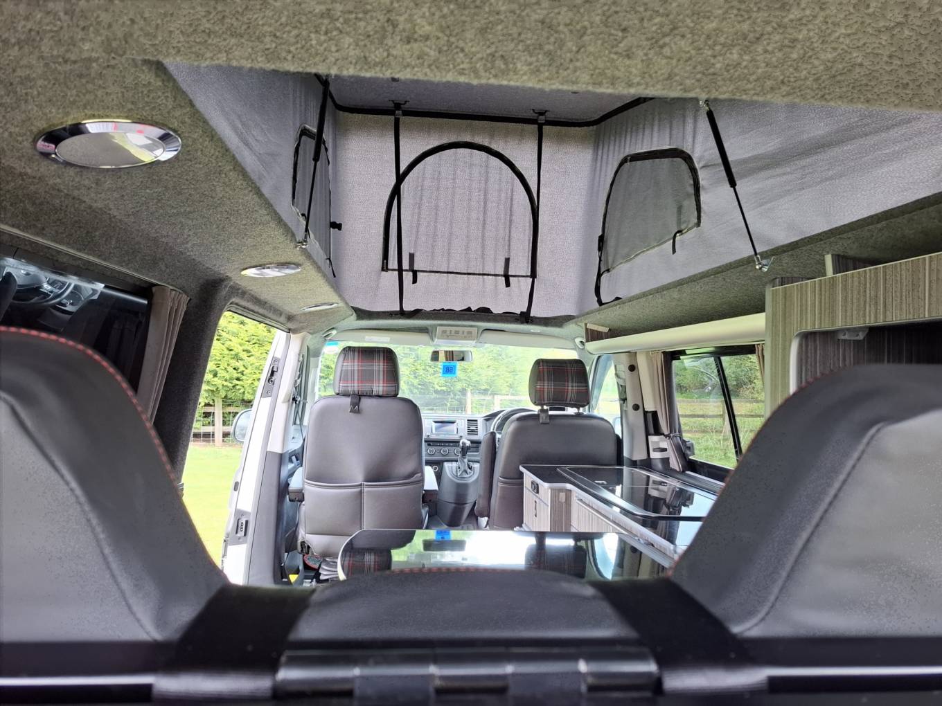 For comfort at bed time the rear seating converts to a rock’n’roll bed, with two additional berths available in the tented pop top on the drop down roof board and mattress.