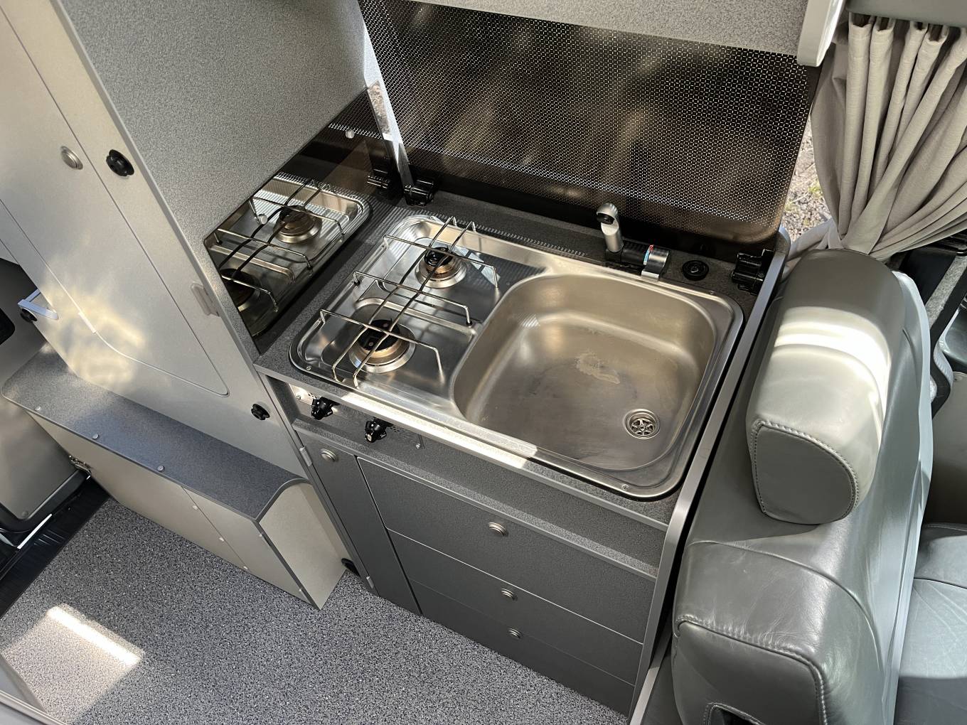 Here we have the stunning VW BILBOS LEZAN with twin single beds, cassette toilet, diesel heating and standing room high top roof. This LWB model is immaculate inside and out and comes with cab air conditioning, alloy wheels tow bar, parking sensors and much more.