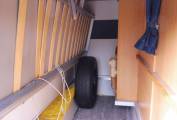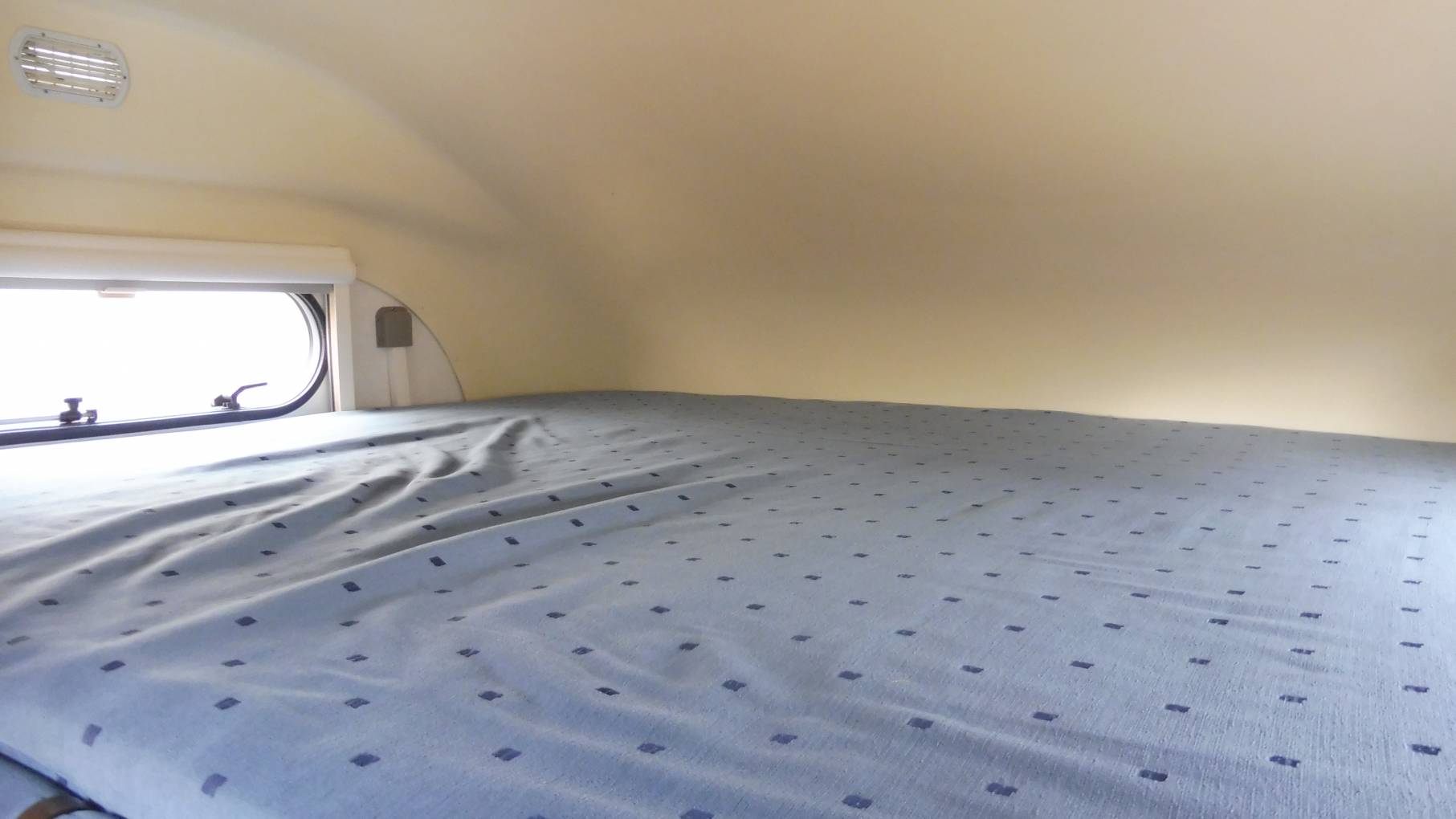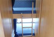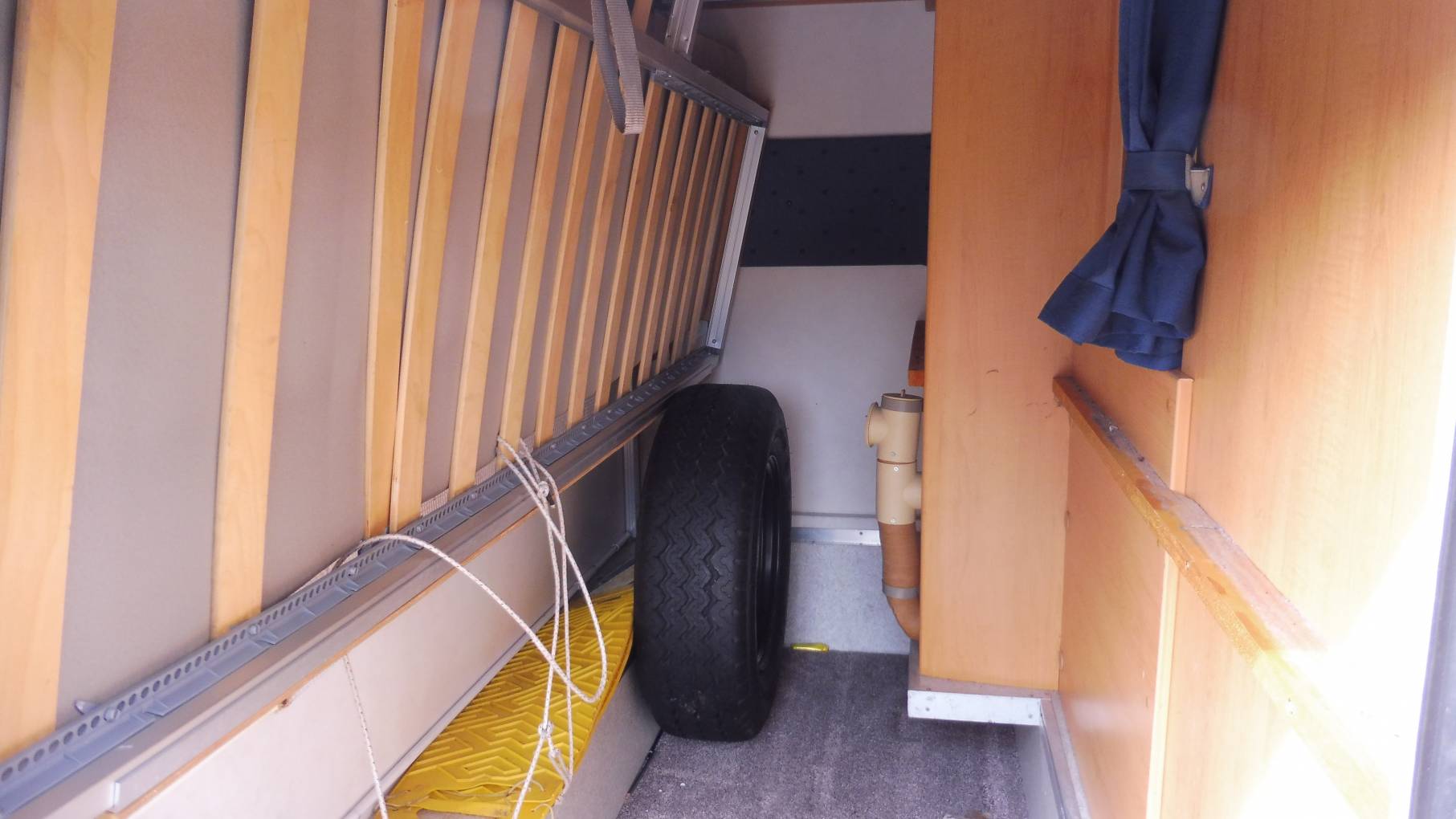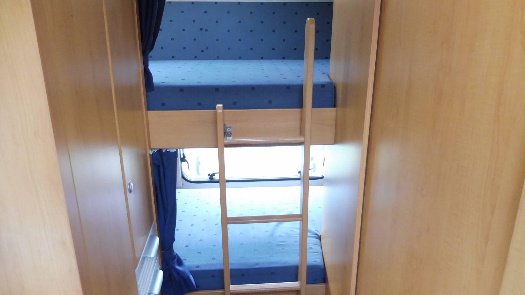 At the rear you have 2 good sized transverse bunk beds, the bottom of which can be lifted to make a very large garage with large external door.