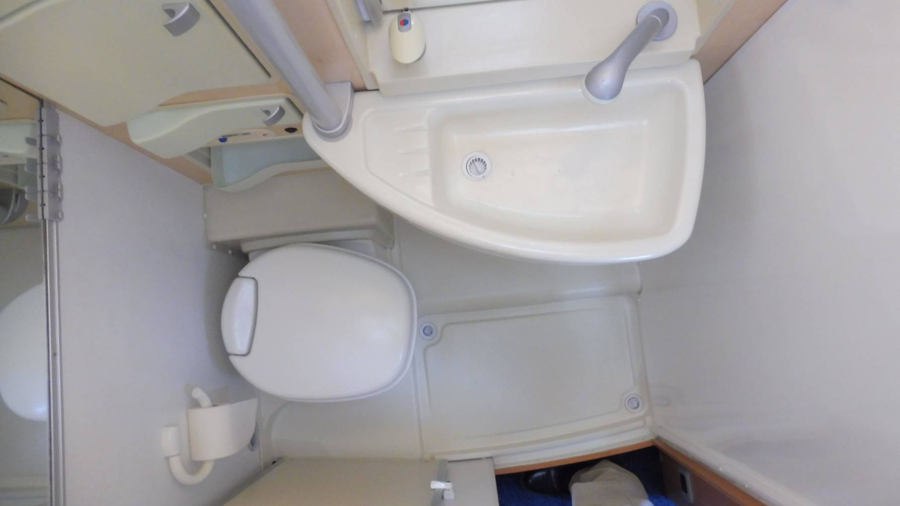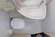 To the rear there is a Washroom with Shower, cassette toilet and vanity unit - opposite is a large wardrobe.