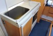 As you enter the motorhome to your left you have a good kitchen area with 3 Gas Burner Hob, Sink, Oven and Grill and lots of storage options.