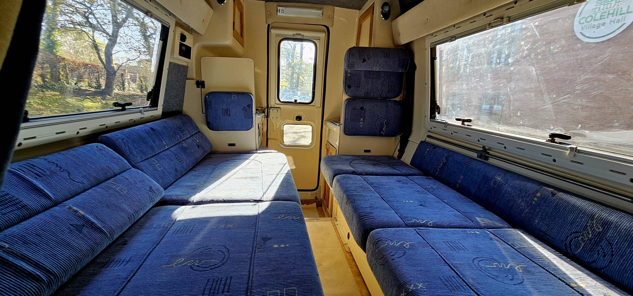 Under the bench seats are storage pods for camping equipment and bedding etc.