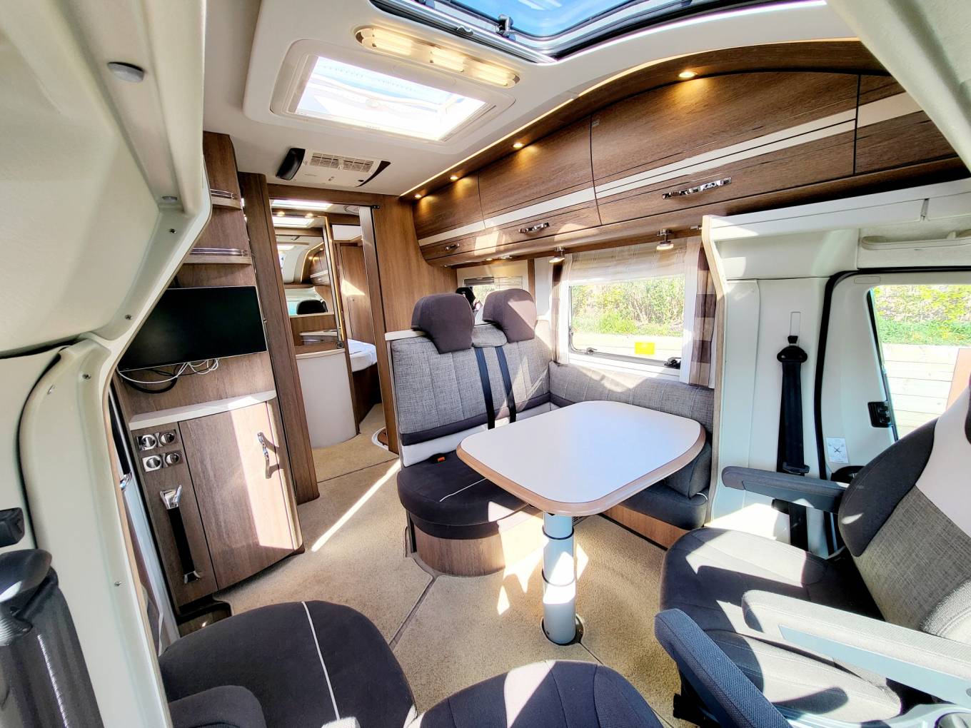 Based on the Fiat Ducato chassis this motorhome has the very reliable 2.3 litre engine which delivers plenty of power whilst delivering you with good fuel economy. This Esprit has only covered 6000 miles and is in great condition. In the cab you have a 6 speed manual gearbox, air conditioning, a multi-media system with sat nav and reversing camera, electric windows and mirrors, driver and passenger airbags, cruise control, cab privacy blinds and a large opening panoramic skylight.