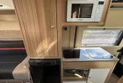 Your kitchen essentials includes a microwave, a grill and a 2 gas burner hob for your cooking. The 3 way fridge has a freezer section and there is a generous amount of storage space for cookware and crockery. There is also a stainless steel sink with a mixer tap.