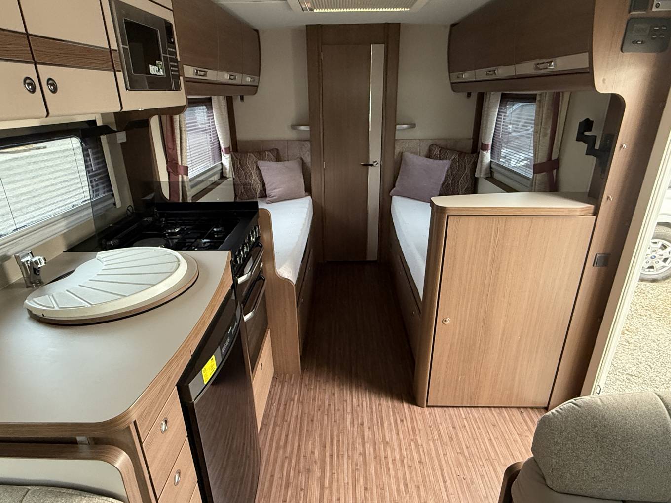 The Encore 285 boasts fixed single beds and large full-width rear bathroom. The front lounge converts to a double bed, with foldaway travel seats neatly hidden beneath. this one owner low mileage example is with us at our new premises motorhome depot Wentbridge viewings ate by appointment but can generally be available 7 days a week to suit your timescales and availability an independent habition check will be completed at the point of sale.