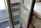 Moving rearwards, the mid-ships kitchen comprises a 3-burner hob, combi-oven, large fridge freezer and sink with mixer tap. A microwave is fitted into one of the lockers in the lounge area.