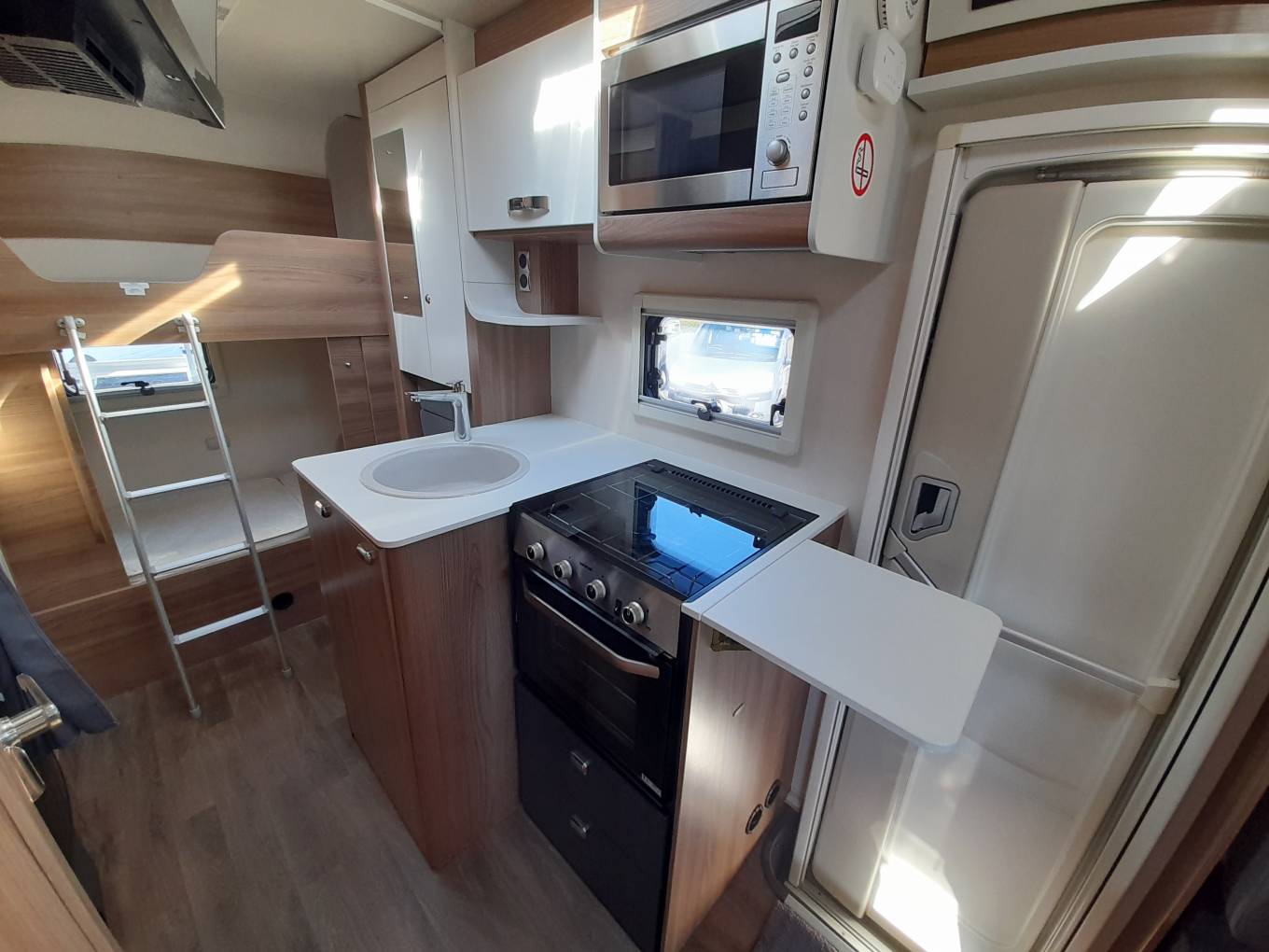 Bunk beds to the rear, drop down double bed over the lounge with the added
