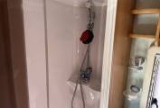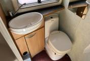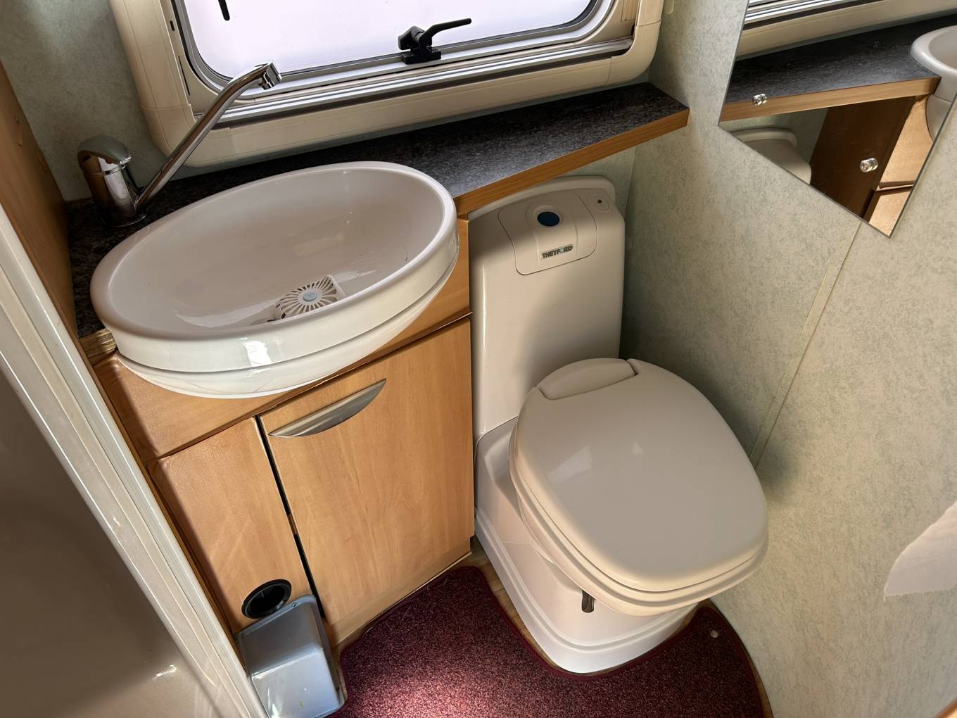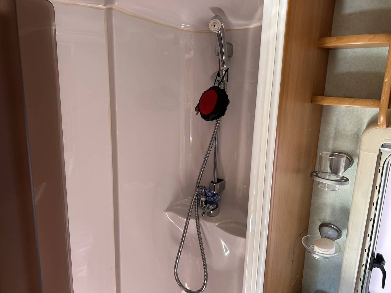 As you enter the motorhome the washroom door is located on the left, there is a shower, hand basin and cassette toilet. There is also a mirror and storage for all your essentials.