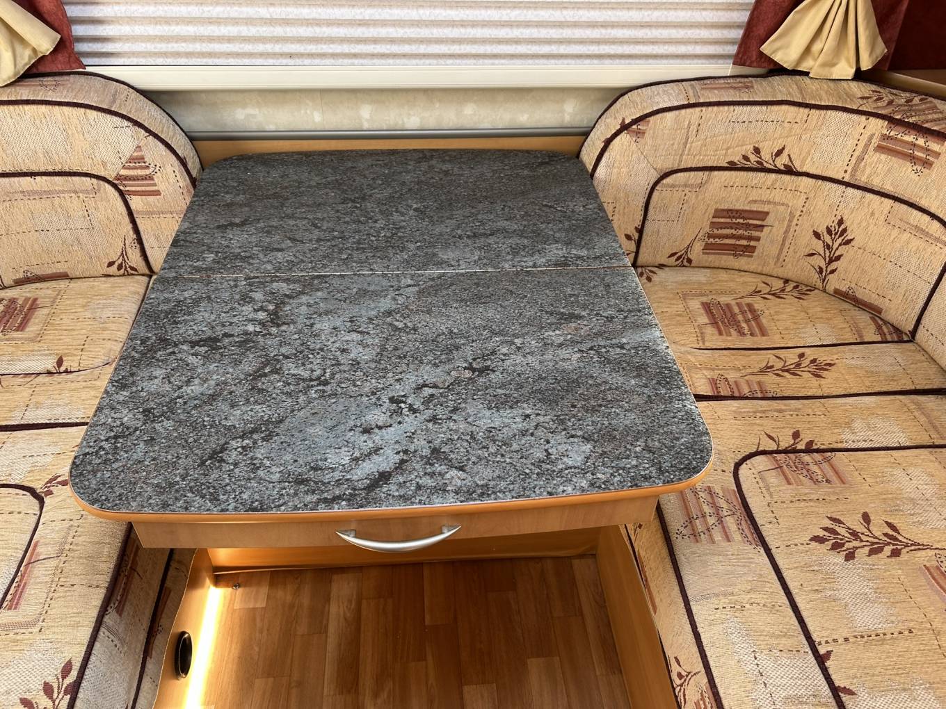 The main feature is the sought after U shaped rear lounge that easily converts into a large double bed. there is a centre storage cabinet with a fold out table, this can be removed and replaced with the supplied cushions to make a truly U shaped lounge. There is a large dining table that stores away when not in use. There are numerous overhead lockers and under seat storage available.