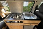 interior boasts a well-equipped kitchen with a twin gas hob, grill, sink, and a