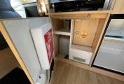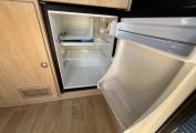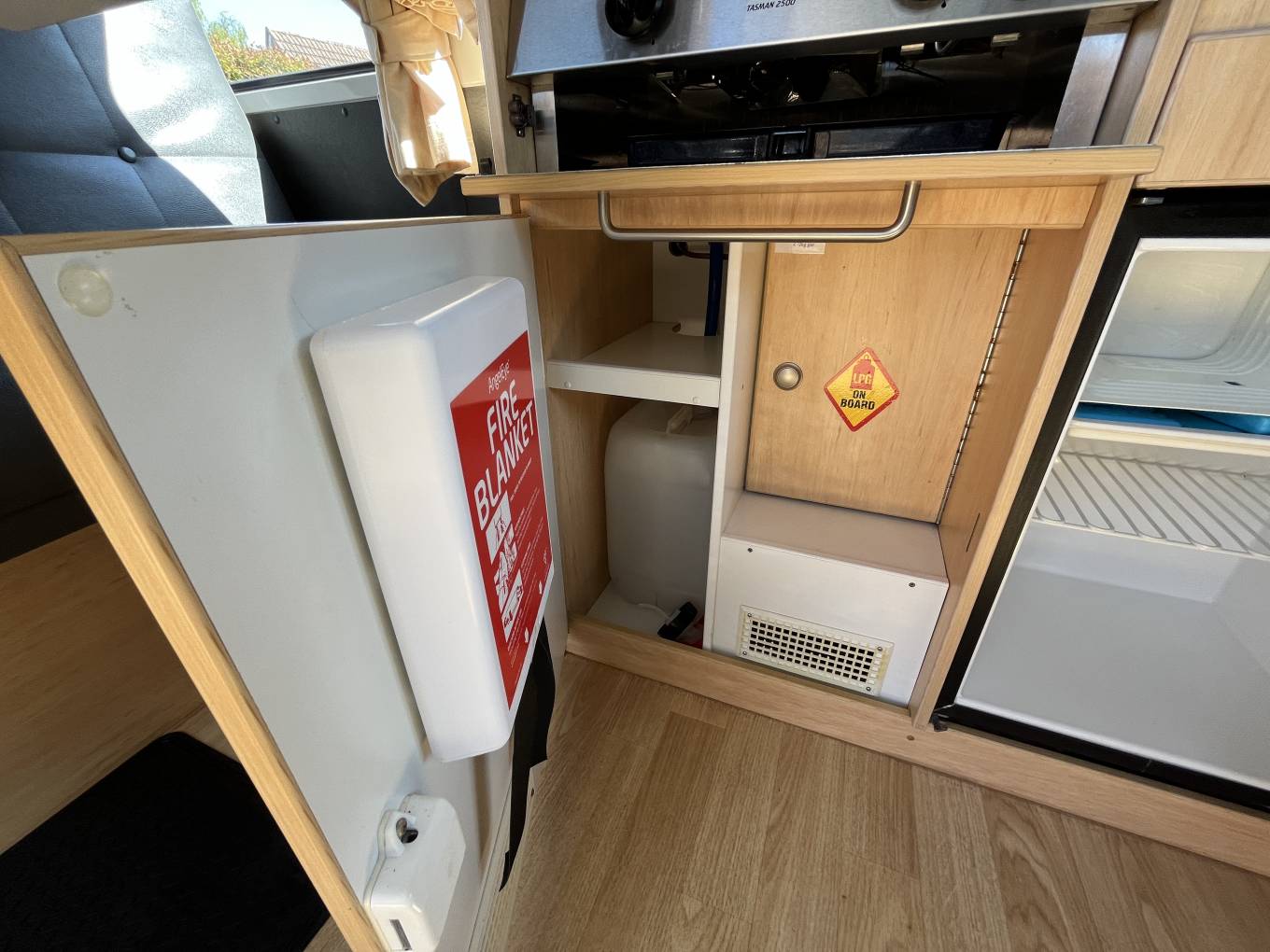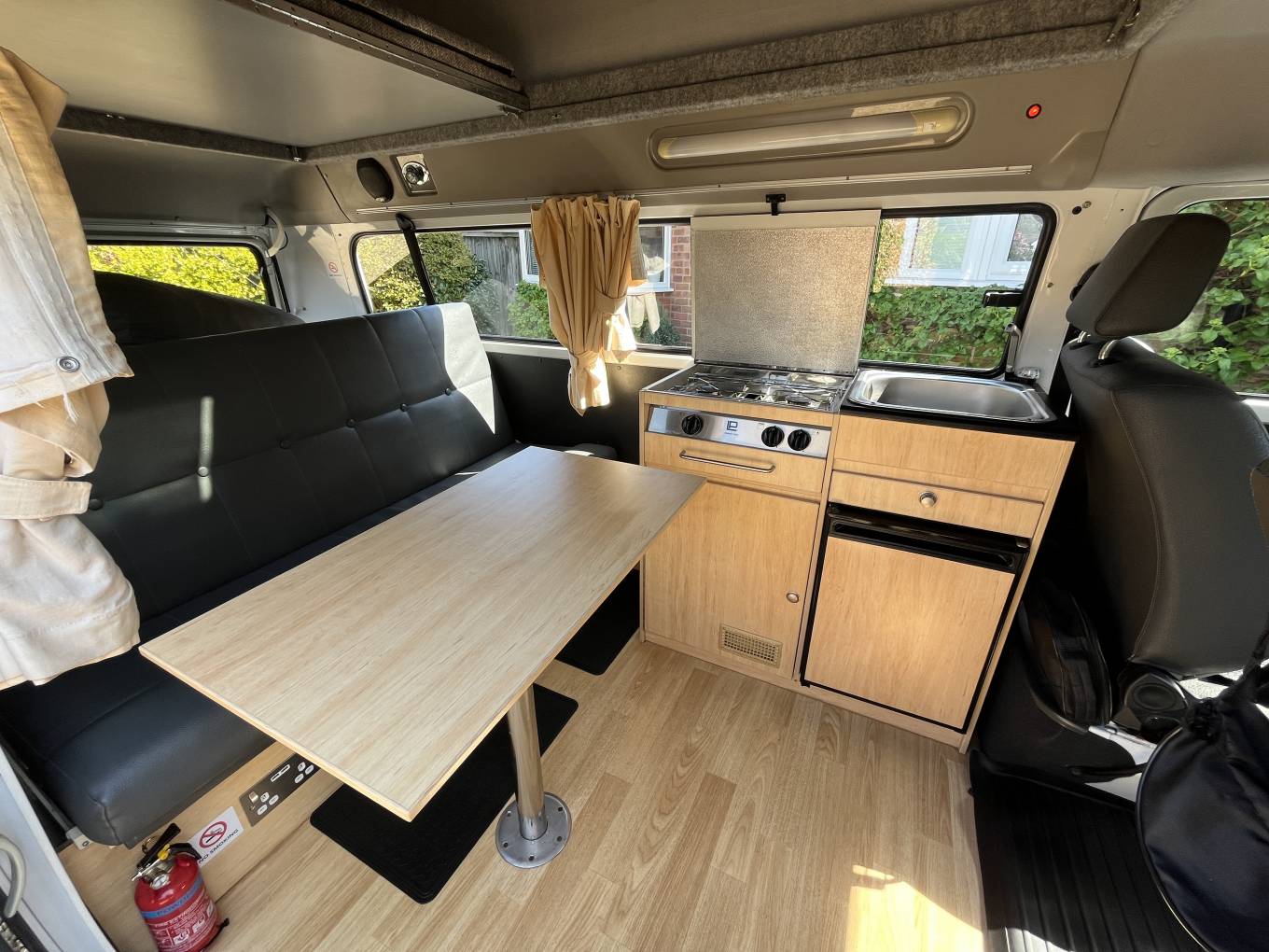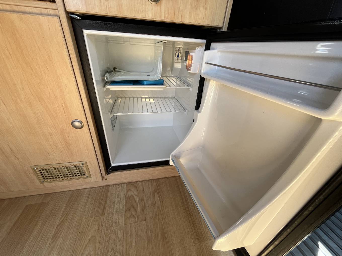 Waeco compressor fridge. Additional amenities include a leisure battery, mains