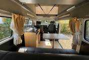 this right-hand drive camper seats five and sleeps four, featuring a full-width