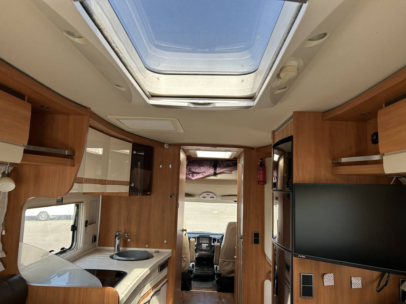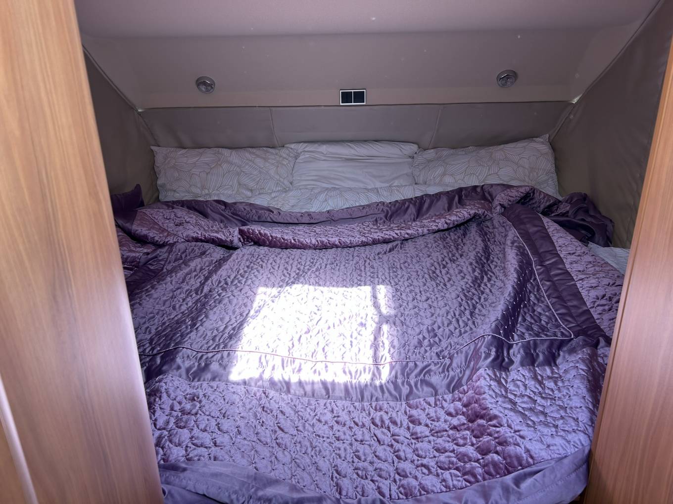 At the front you have a large pull down bed that can be used as twin singles or a kingsize bed with easy access using 2 wide pull out steps.