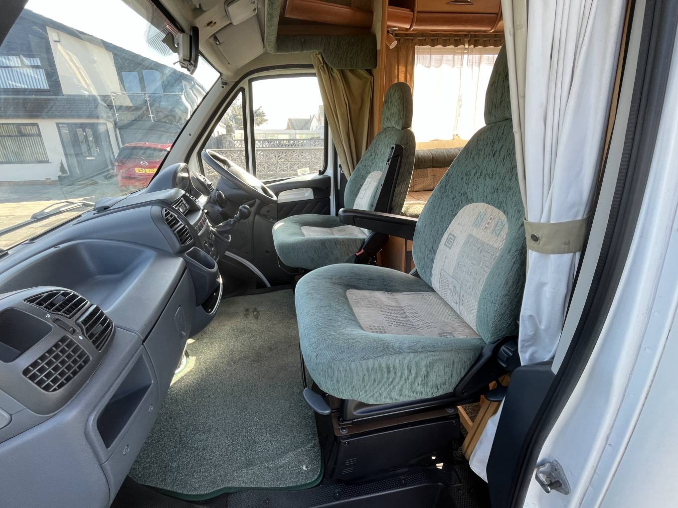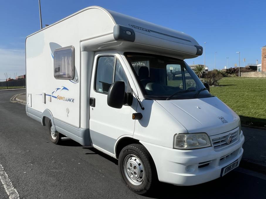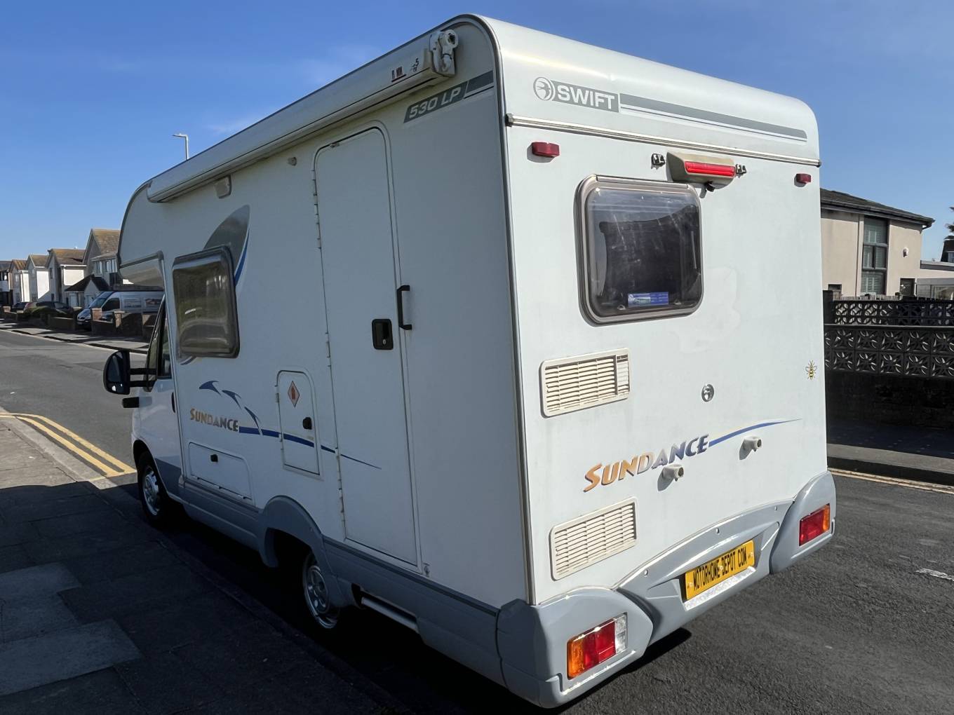 Swift Sundance 530, 2 Berth Motorhome with End Kitchen. This is a compact 5.5 metre motorhome built on the Fiat Ducato chassis with the last service in March 2025 including new cam belt and 2 previous owners. At the rear is the kitchen with Hob, Grill, Oven and Fridge and next to this is the bathroom. In the centre is the lounge area with 2 bench seats and at the front the 2 cab seats swivel. It comes with Immobiliser, CD Radio, Blown Air Heating, TV Aerial, Canopy Awning, Electric Step, Gas Bottle and 2 sets of keys. Available for viewing by appointment in Blackpool, call for more photos, videos and information.