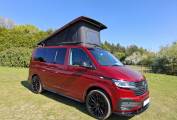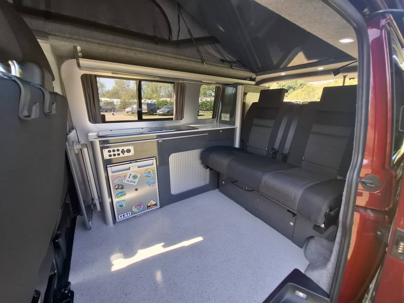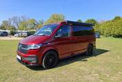 Converted by Bath VW Campers, a specialist in bespoke VW campervans, this is a T28 Highline in striking deep red, and is immaculately presented throughout.