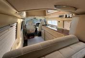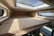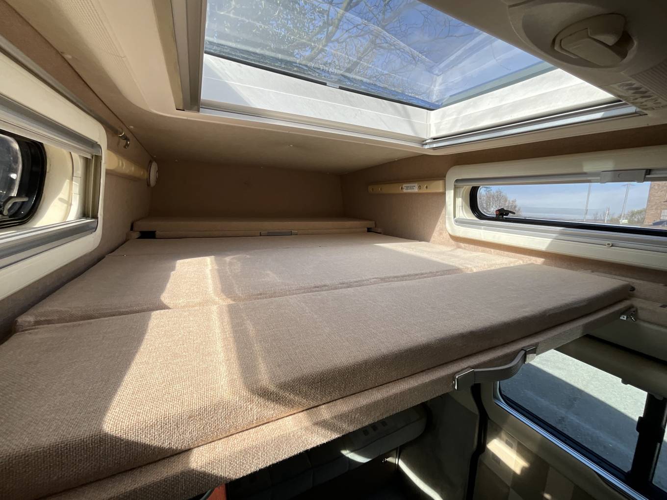 Starting at the front of this campervan you have two captain seats which swivel to the rear giving you a great area for relaxing & socialising, with space around a central table that is easily removed and stored. The central dinette has a quality kitchen area featuring a double hob, stainless steel sink with mixer tap and separate drainer, 3 way fridge with freezer compartment and plenty of storage space. As evening nears the rear travelling seats easily convert into a comfortable double rock “n” roll bed with storage underneath. When the seats are laid down there is also a parcel shelf at the rear where you can comfortably eat your lunch and look out at the gorgeous views. You will find the second sleeping area in the roof and when this is not being used it pushes back to maximise space.