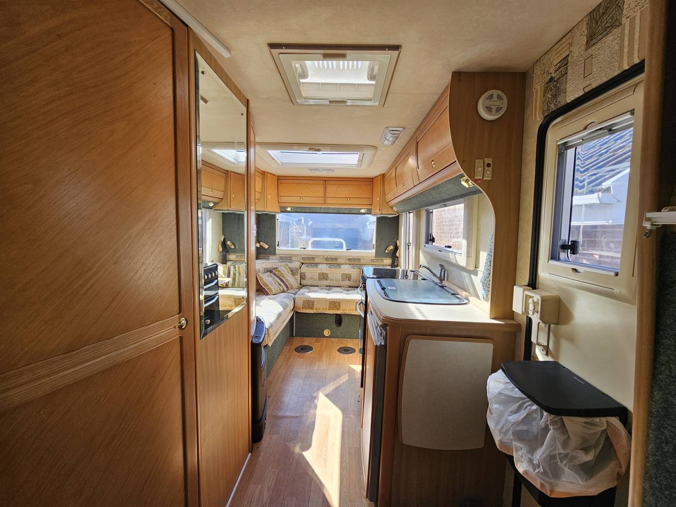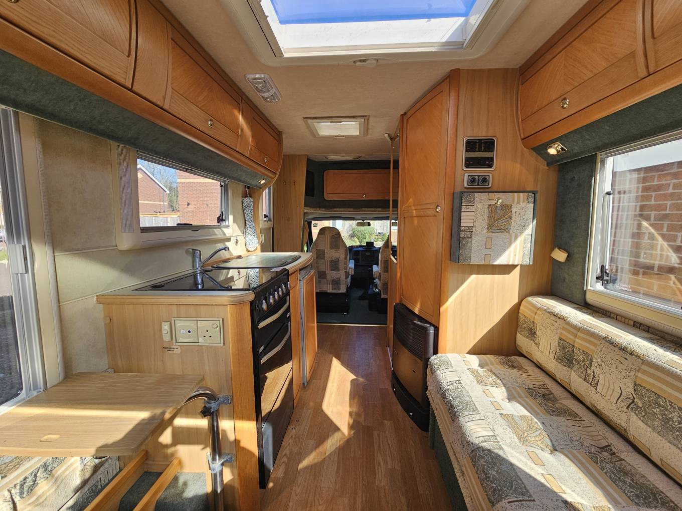 This 2004 Auto-Sleepers Ravenna is a brilliant, compact motorhome. Built on the reliable Ford Transit 2.4L turbo diesel engine with manual gearbox, it can be driven on a standard UK licence with a 3500kg weight. At just 6.04 metres in length, it’s easy to manoeuvre and park.