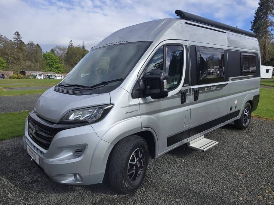 Motorhome Depot Glasgow is delighted to have for sale this V-Line 610 SE high top panel van built by Auto-trail to a very high standard. The 610 SE is big enough to accommodate two people in style, small enough to negotiate narrow roads at just over 2 metres in width and a length of under 6 metres. And It’s not just its looks that stand out its interior will impress too, particularly the kitchen and spacious modern washroom.