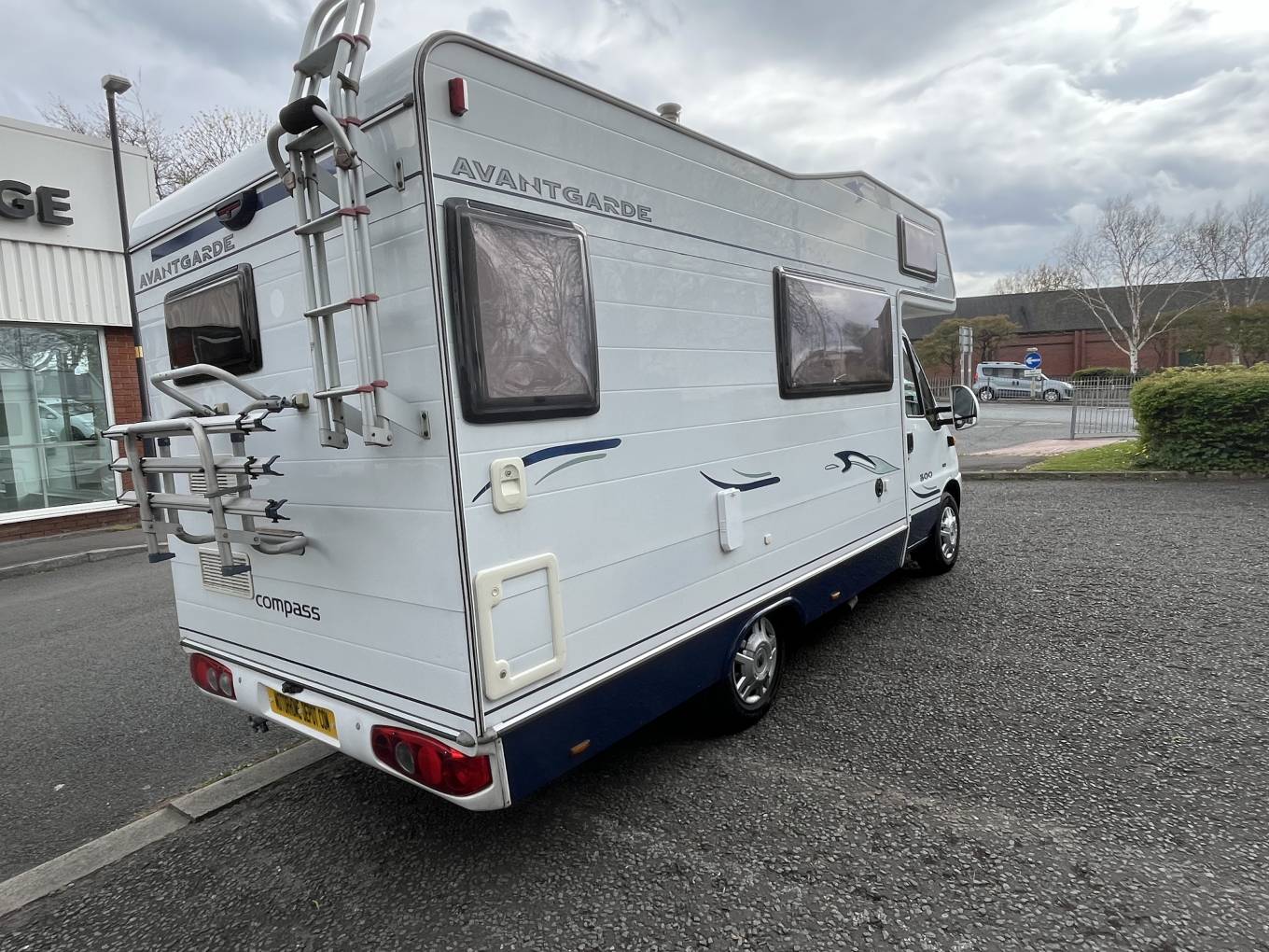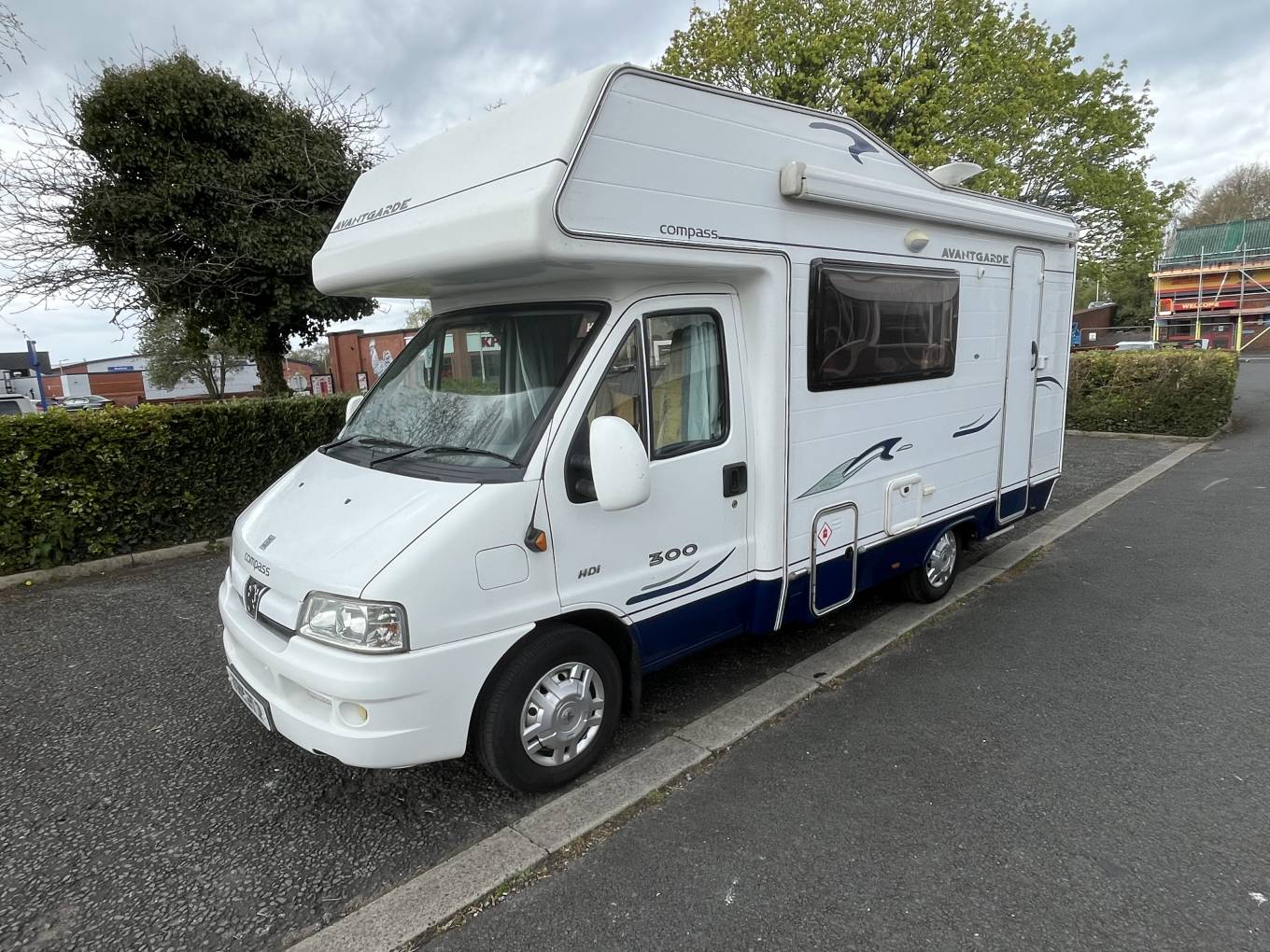 Compass Avantgarde 300, Compact 5 Berth Motorhome with End Kitchen. Based on the Peugeot Boxer with 2.2 engine, it has good service history, and long MOT with no advisories. At the rear is the kitchen with Hob, Grill, Oven and Fridge and next to this is the bathroom. In the centre is the lounge area with a large bench seat and a dinette and at the front there is an over cab bed. This is vehicle is not brokerage a sale and is compliant with the consumer rights act 2015. It comes with 4 Seat Belts, Electric Windows and Mirrors, Immobiliser, Rear Camera, Heki Roof Light, Blown Air Heating, TV Aerial, Canopy Awning, Rear Ladder and Bike Rack. It also comes with gas bottle, mains lead and 2 sets of keys. Available for viewing by appointment in Preston, call for more photos, videos and information.