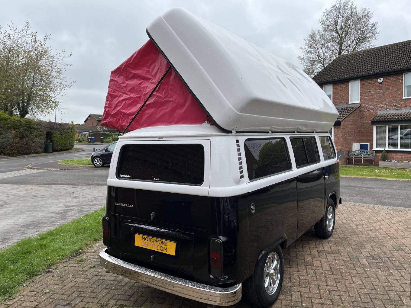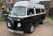 The 1976 Volkswagen T2 Super Viking Campervan is a classic icon of road-tripping freedom. Based on the VW Type 2 "Bay Window" model, it features a rear-mounted, air-cooled 1.6L flat-four engine and rear-wheel drive. The "Super Viking" conversion, done by Devon Conversions in the UK, is known for its distinctive, extra-large pop-top roof, which opens accordion-style to provide standing room and sleeping space for up to four adults which rare for campervans of the era.
