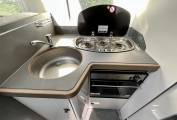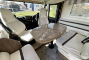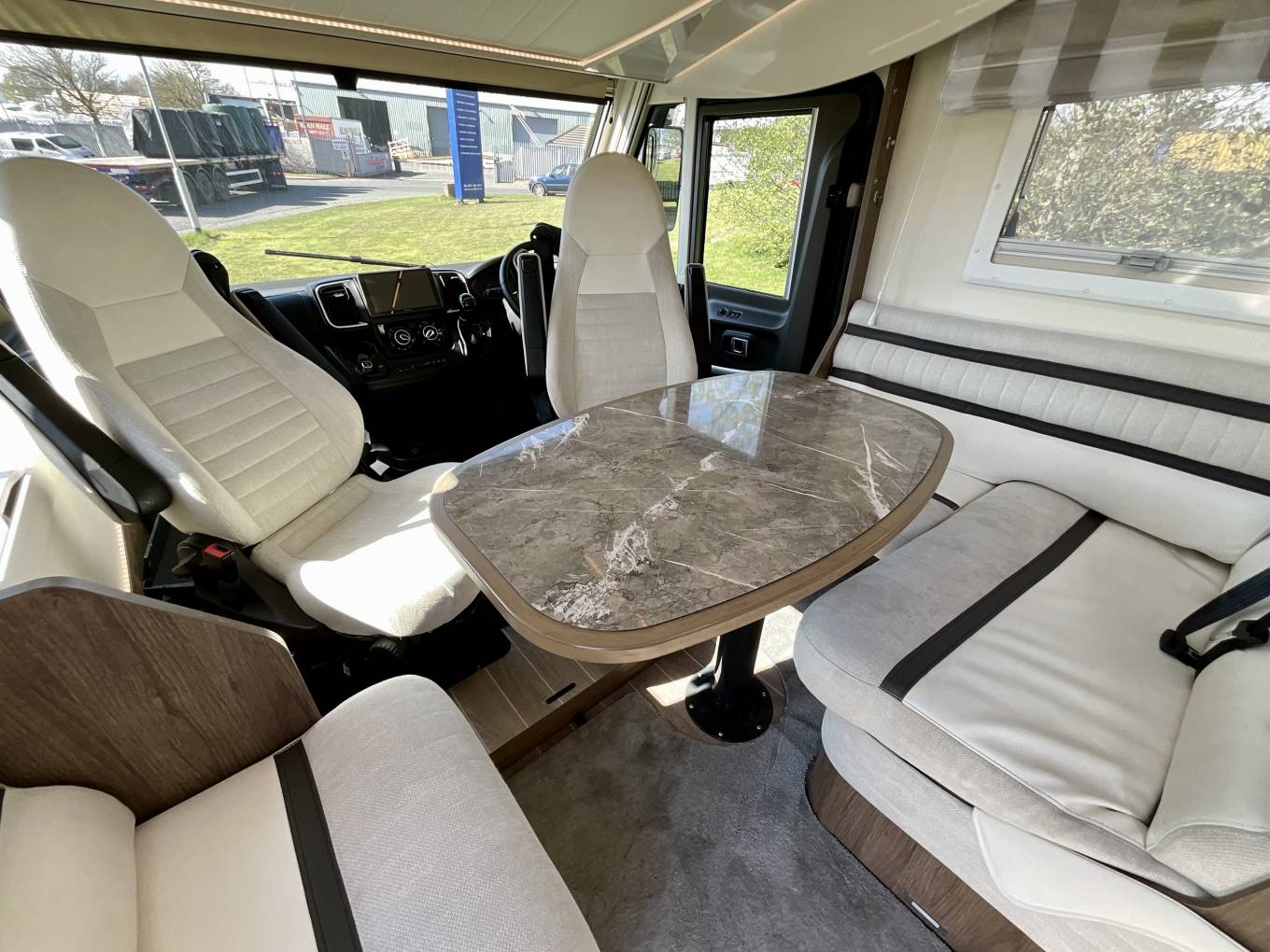 As you step into the Pegaso 740, you are greeted with a modern lounge which can comfortably seat six, and an adjustable marble effect table. Truma heats this motorhome quickly and efficiently.