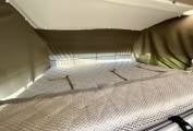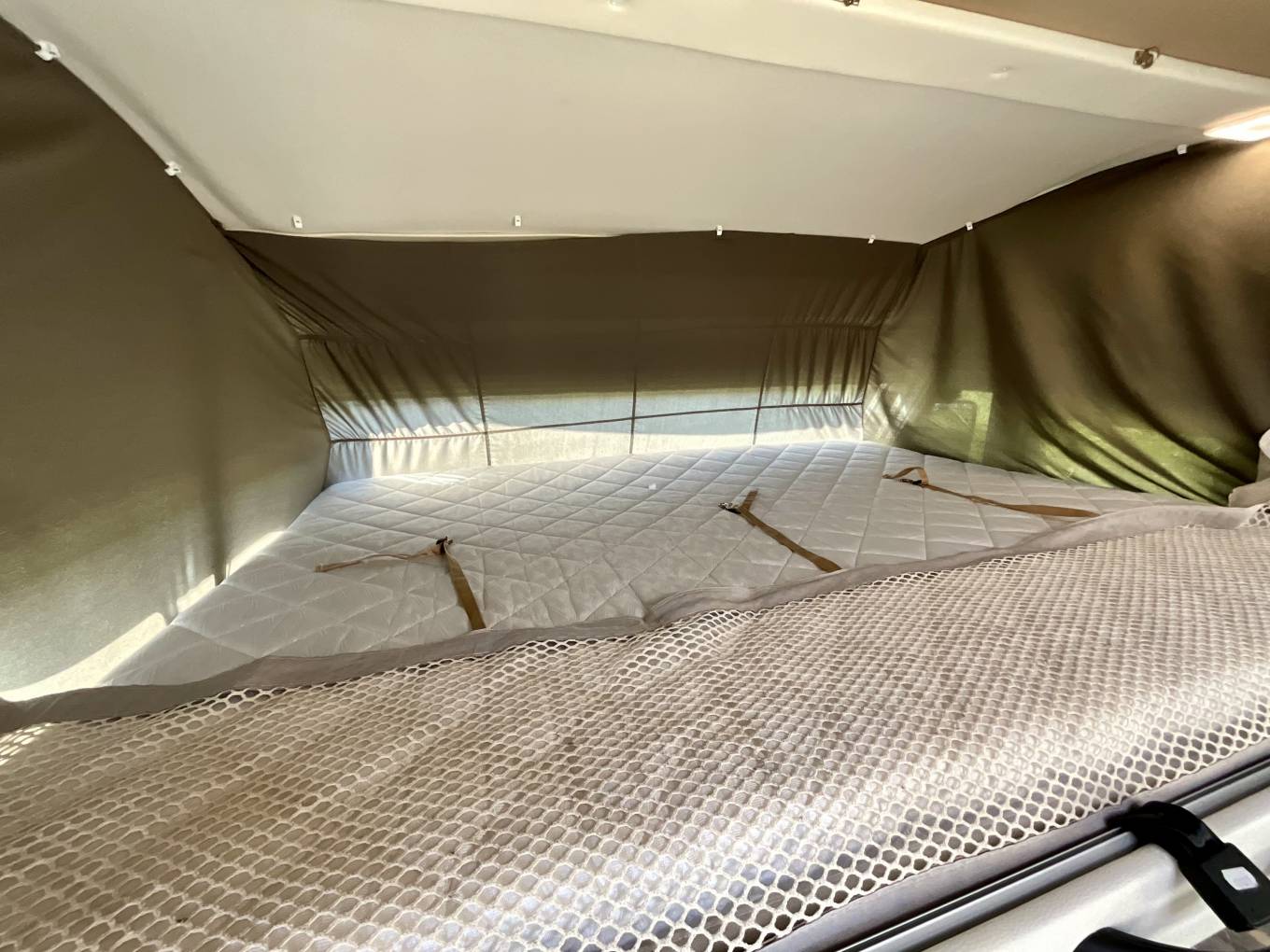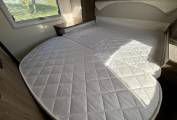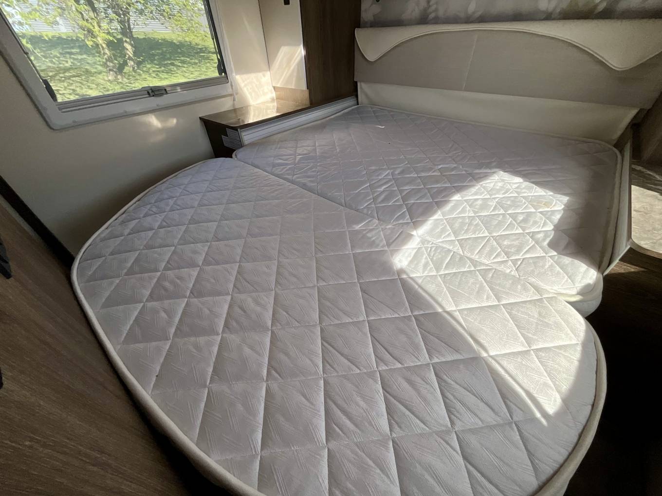 The adjustable rear island bed is comfortable and spacious, featuring additional storage underneath and wardrobe space either side for clothing. Beneath the bed is a large garage, perfect for anything you might need on your travels.
