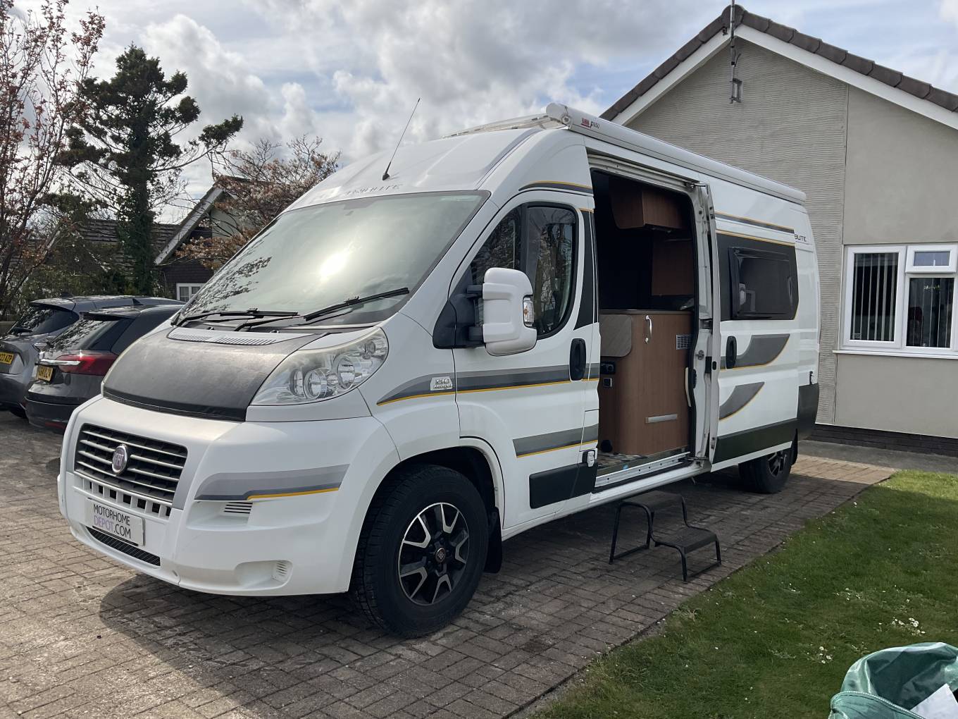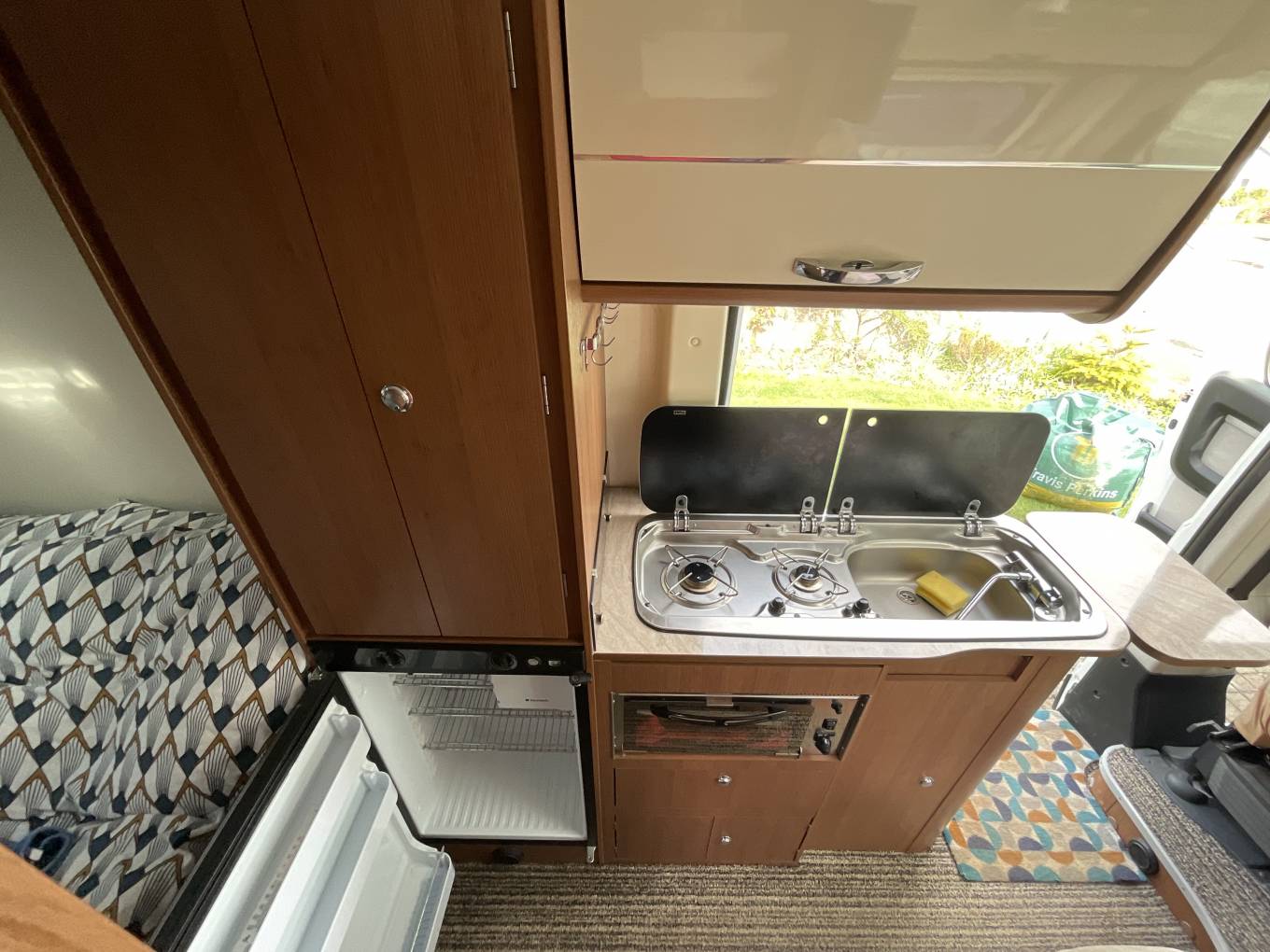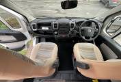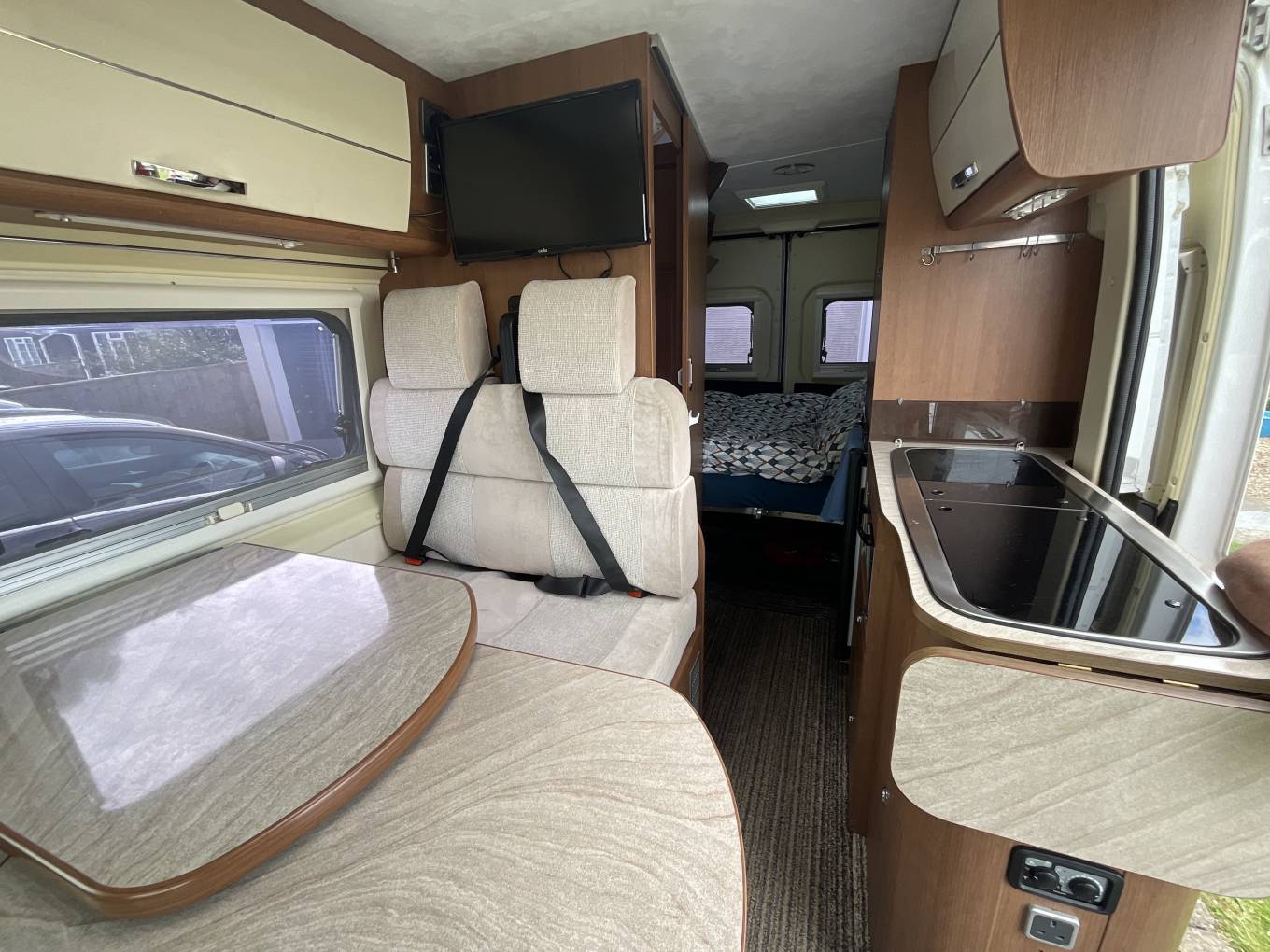 This 6 meter van is compact enough to go to those remote beauty spots but still gives good living space and facilities. It has been well maintained with good service history including replacement cam belt in December 2021, last service in Nov 2024 and hab check in Feb 2025. The vehicle is a 3 berth motorhome with a rear bed, the rear is a multi purpose space which can be a double bed, a lounge area or large storage space. In the center is the bathroom and kitchen, there is a dual hob, grill, sink with hot and cold water, three way fridge and ample storage. At the front is the dining area with 2 captains seats, extendable dinning table, two forward facing seats with two additional, three point seat-belts, this area can be converted into a single bed. It comes with 4 seat belts, Cruise Control, Rear dual Camera, Webasto Heating and Hot Water. It also comes with 2 sets of keys, gas bottle and mains lead. Externally the van has an under slung spare wheel, 150w solar panel, a Snipe satellite system, Alloy wheels and a Tow Bar.