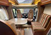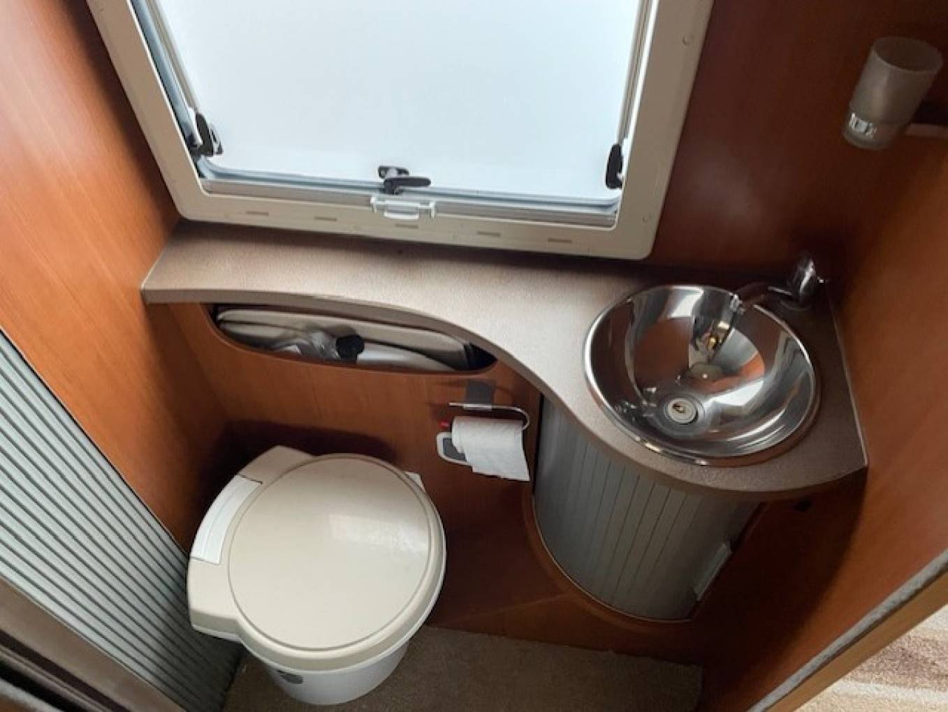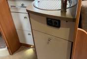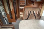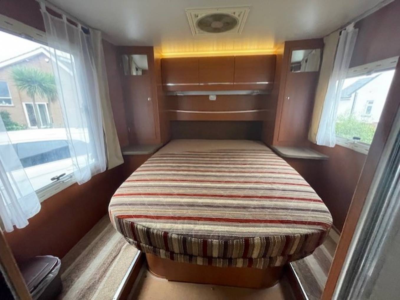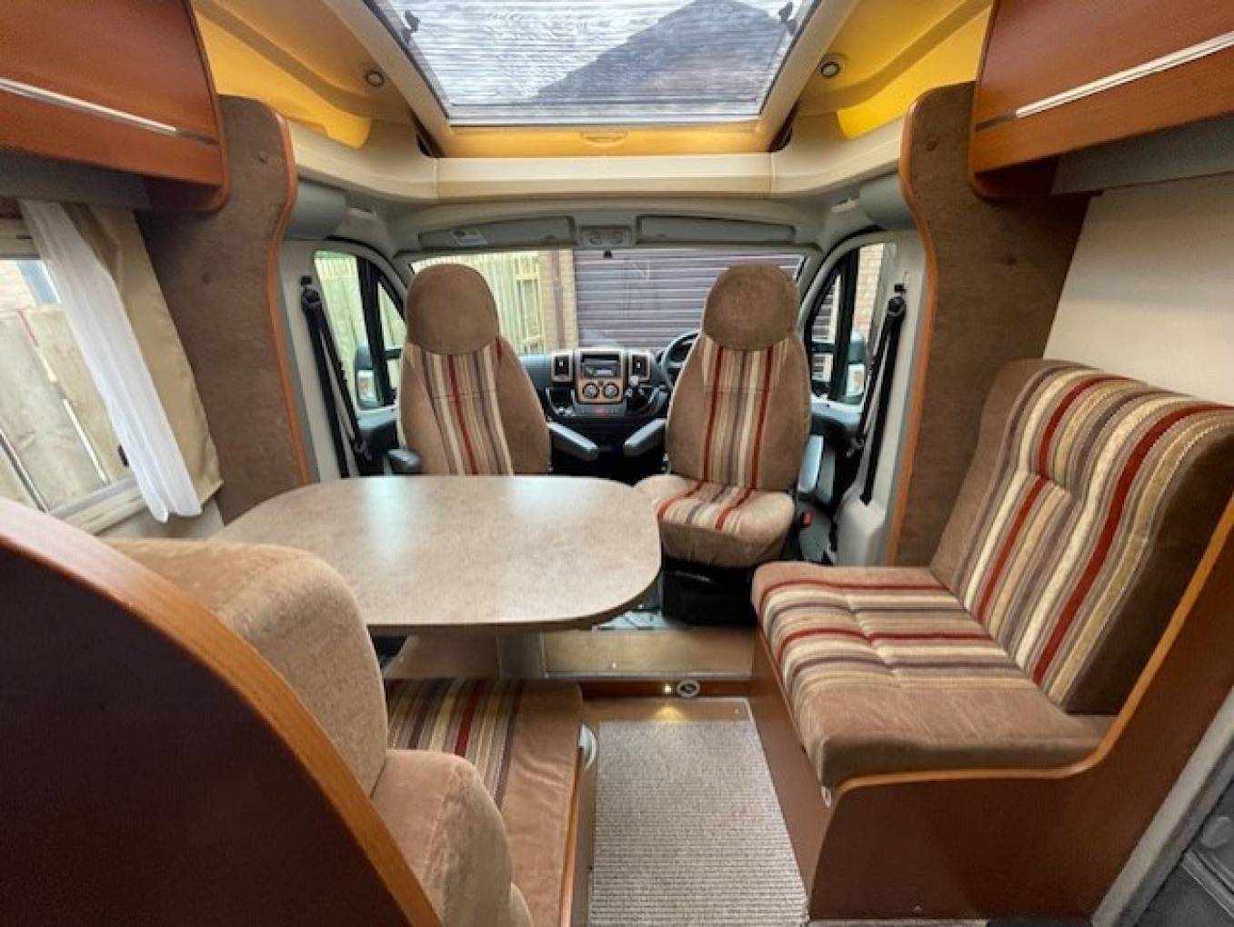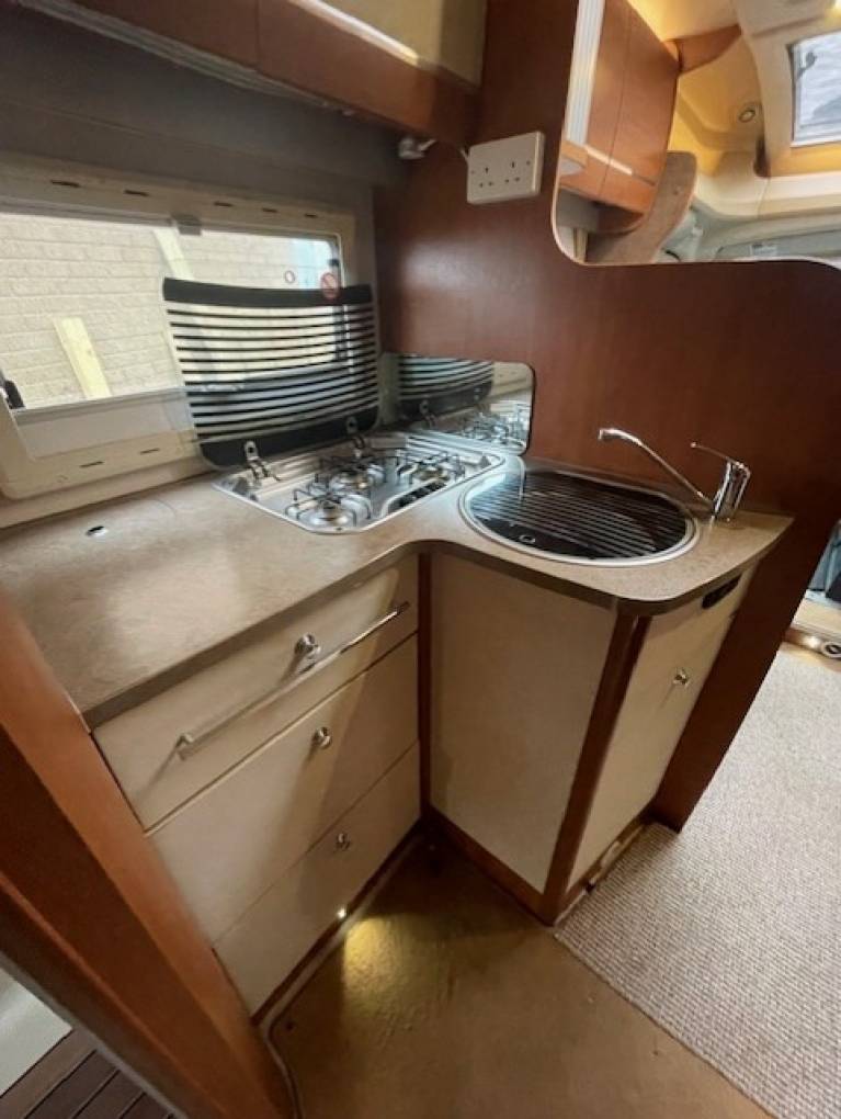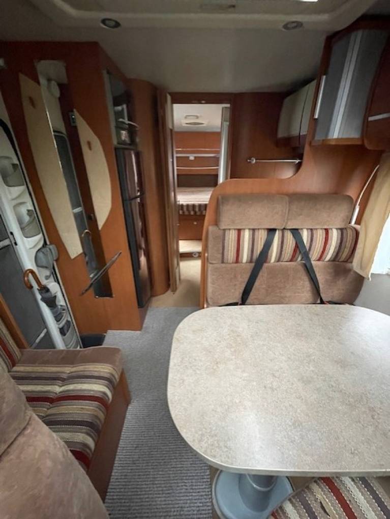 At the rear the Island bed has storage underneath and the garage is accesible from both side doors. Washroom has a separate shower cubicle with the cassette toilet and wash hand basin opposite. Mid ship kitchen is fully functional and has a 3 burner gas hob, oven, grill, sink with mixer tap and a new large fridge freezer has been fitted. The lounge/dining area is spacious and the captains chairs will swivel round to allow more space.