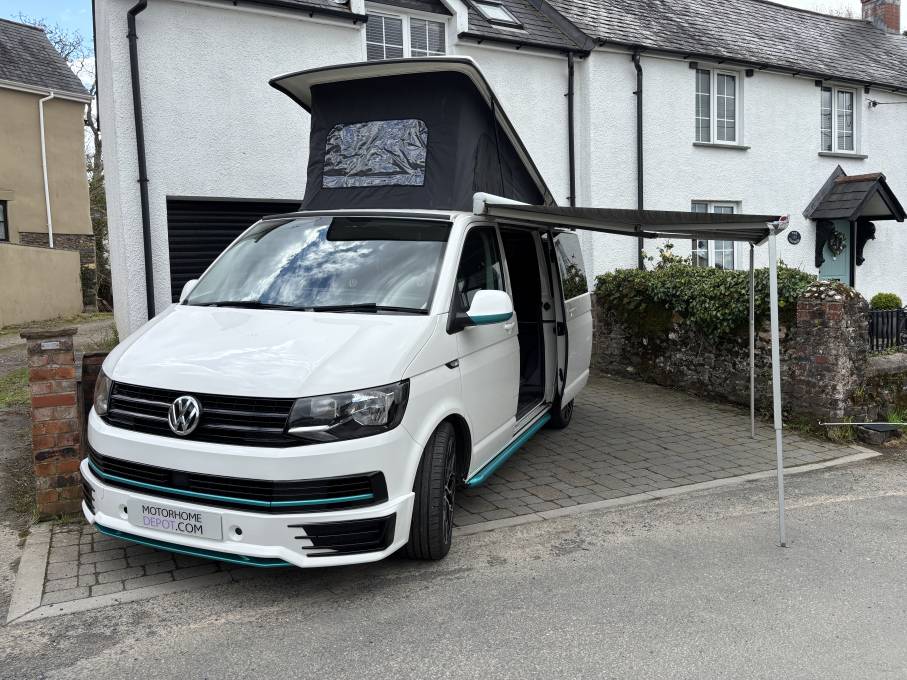 Motorhome Depot Exmouth are proud to present this eye catching 2019 VW Transporter T28 S Line with a West Dubs Pop Top. Having covered 52,345 miles with service history, this 2L TDI Bluemotion 5 speed manual transmission campervan has a current MOT valid until 08/08/25 and has never had an MOT advisory to date.