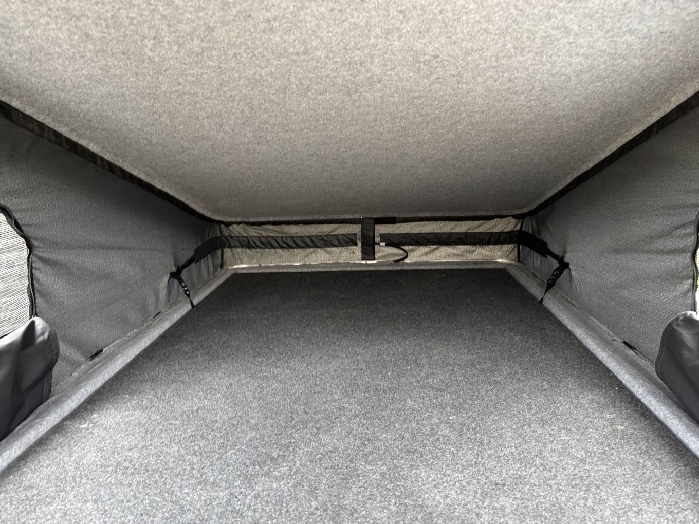 Inside the rear twin opening doors, there is space for bags and coats etc, as well as the stow away placement for the table when not in use.