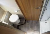 Onboard facilities include fresh and waste water tanks, dual fuel heating and hot water, a well equipped kitchen with dual fuel hob, gas oven and grill, large fridge freezer, storage and worktop extension, while the washroom straddles the motorhome with fore and aft solid privacy partitions, fully lined shower cubicle, toilet and vanity sink, offering plenty of changing room. The fixed rear twin beds are easily accessed from the built in steps and again there is good storage and lighting here as elsewhere in the Adamo. Under the rear is the garage space with twin access doors.