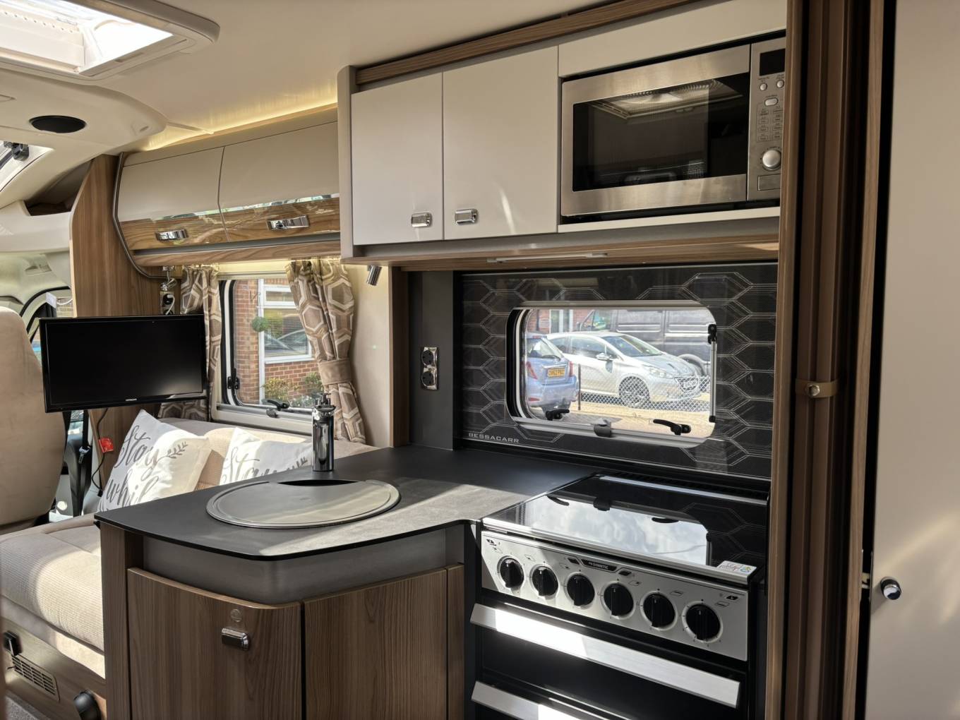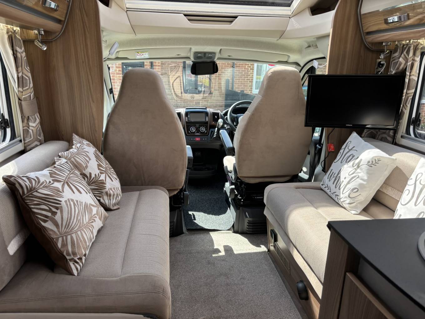 This Motorhome comes with (but not limited to): Cab Air Conditioning, Reversing Camera, Thule windout awning and rain room, TV and aerial, 2 TV mounts, Solar Panels, Thatcham Alarm and tracker, Cruise control, Diesel Heater, Alde Heating system, Fly screens and blinds throughout, 2 Sets of keys, Service history, Tow Bar, Inbuilt Satnav
