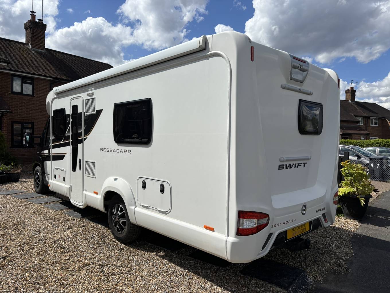 Motorhome Depot Letchworth are proud to present this 2019 Swift Bessacarr 584 motorhome (4 berth / 2 belted seats). Fitted on the reliable Fiat Ducato chassis and powered by a 2.3L 150BHP, Semi Automatic engine. With only 7,526 miles on the clock and 3 careful owners, this motorhome has been well looked after and has ZERO advisories throughout it's MOT history. Full service to be carried out on 15th August 2025 and a habitation check was carried out in June 2025.