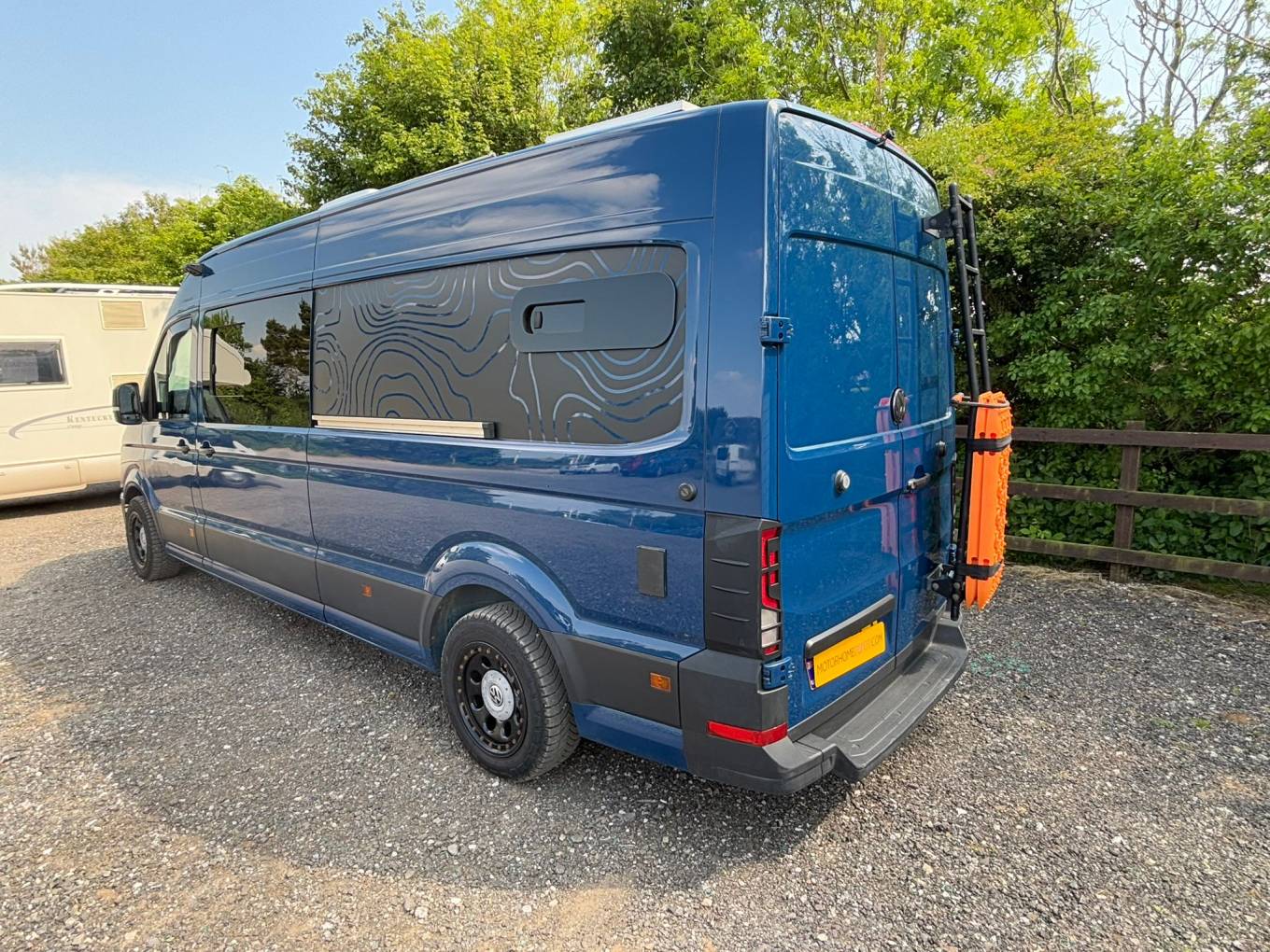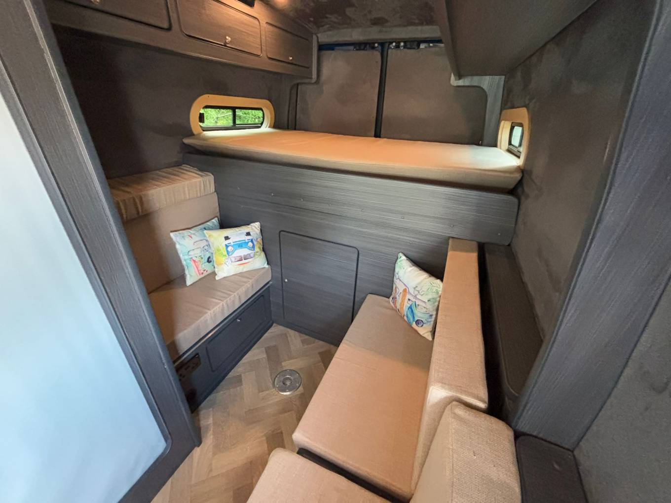 The Crafter is loaded with extras and no expense has been spared and includes; 420w of Solar Panel, Habitation Air Con, Cab Air Con, 320AMP of Leisure Battery, External Shower Point that supplies Hot and Cold Water, Cruise Control, Bluetooth with Apple Car Play, Truma Controls for the Hot Water and Heating, TV, 3 Point Sockets throughout the Camper, Plenty of 240 Sockets throughout, Electric Windows and Mirrors, Heating, Gas Bottle, Hook Up Cable, Fan over the Bed, Recent Cross Climate Tyres with a cost of over £1000, StarLink Satellite, and more.