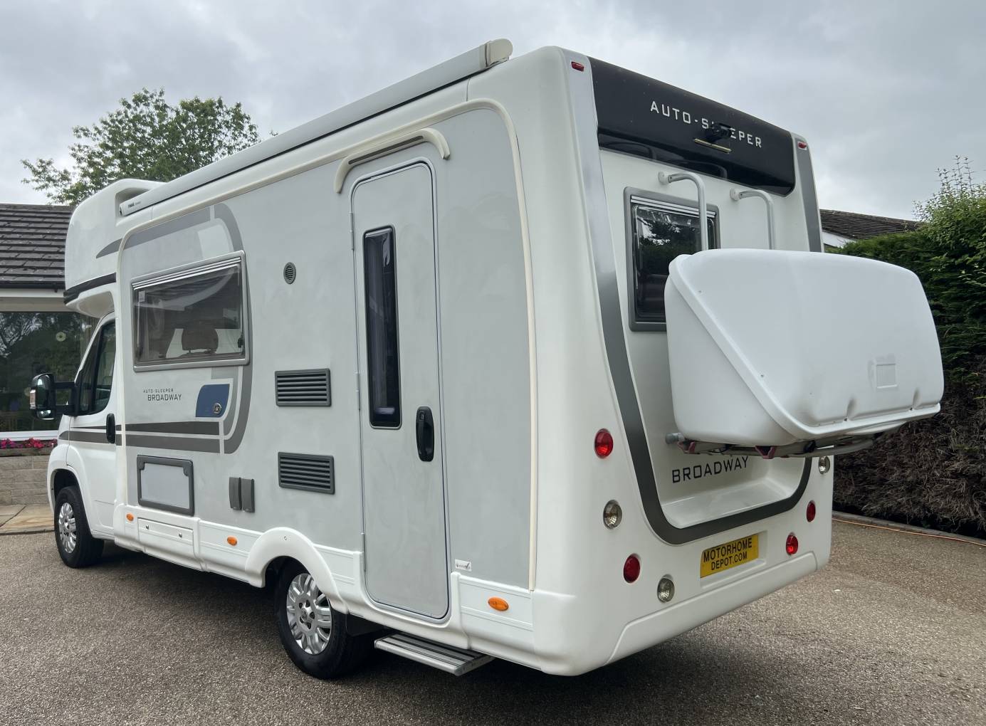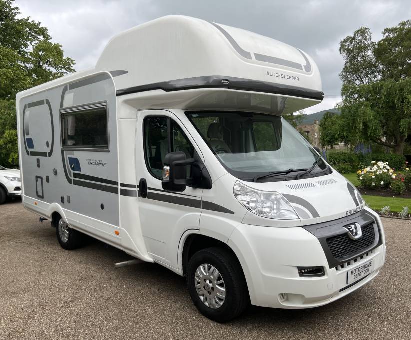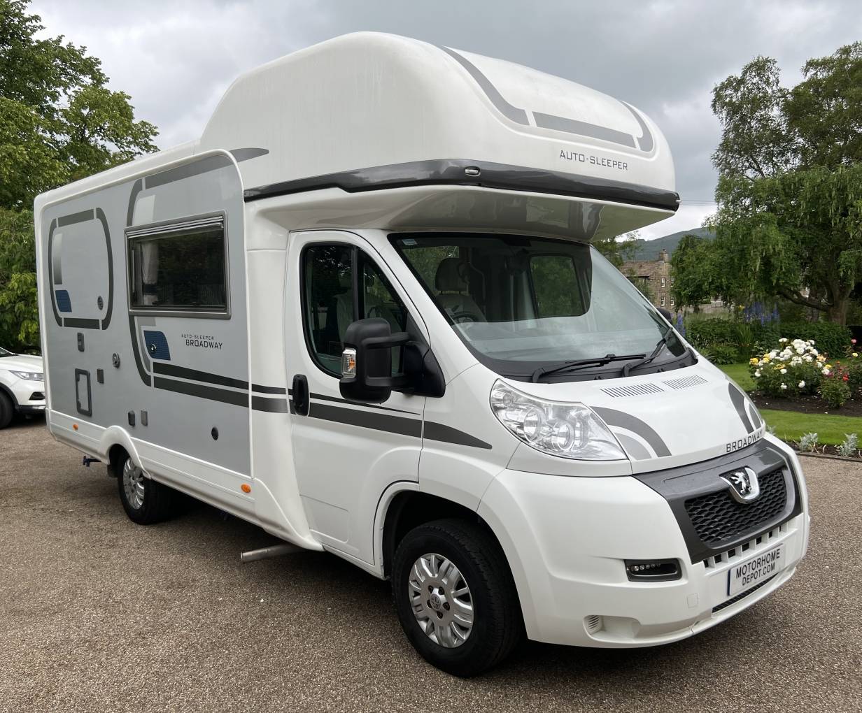 Call with any questions 01423 609985. This 2014, 4 berth coachbuilt motorhome is a lovely example of an Auto-Sleeper Broadway EK. There is plenty of room inside and every part of the 6.28 metre motorhome is used to good effect. Briefly it compromises, rear kitchen and washroom, dinette and sofa opposite, 2 swivel seats upfront, with overcab bed above. It has travelled only 22,817 miles and 1 owner from new.