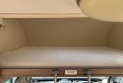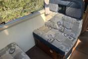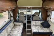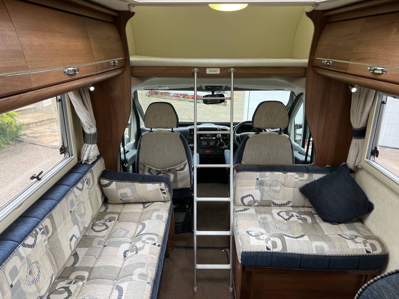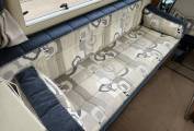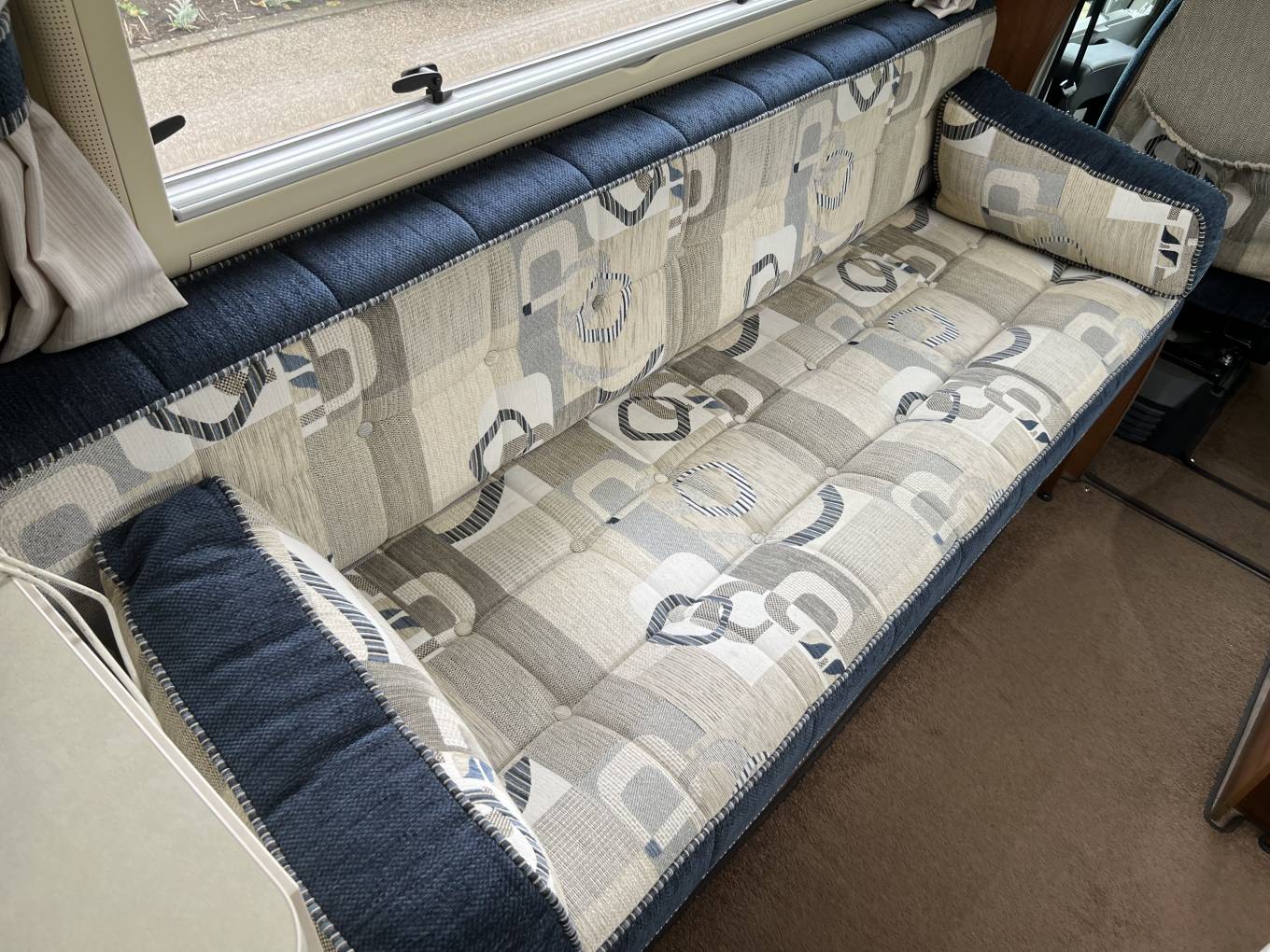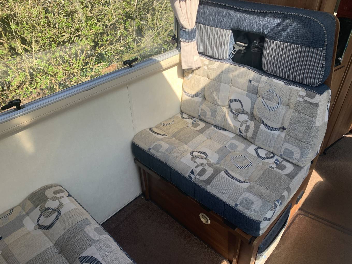 The dinette has forward facing seats, with 2 seatbelts and forms a double bed using the seats behind driver seats and opposite, there is a long sofa. There is the option, to create 2 single beds or a large double bed. The upholstery throughout is in excellent condition.