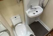 The well-proportioned washroom, has toilet, sink and shower, which has a full shower enclosure created using a clever pivot system.