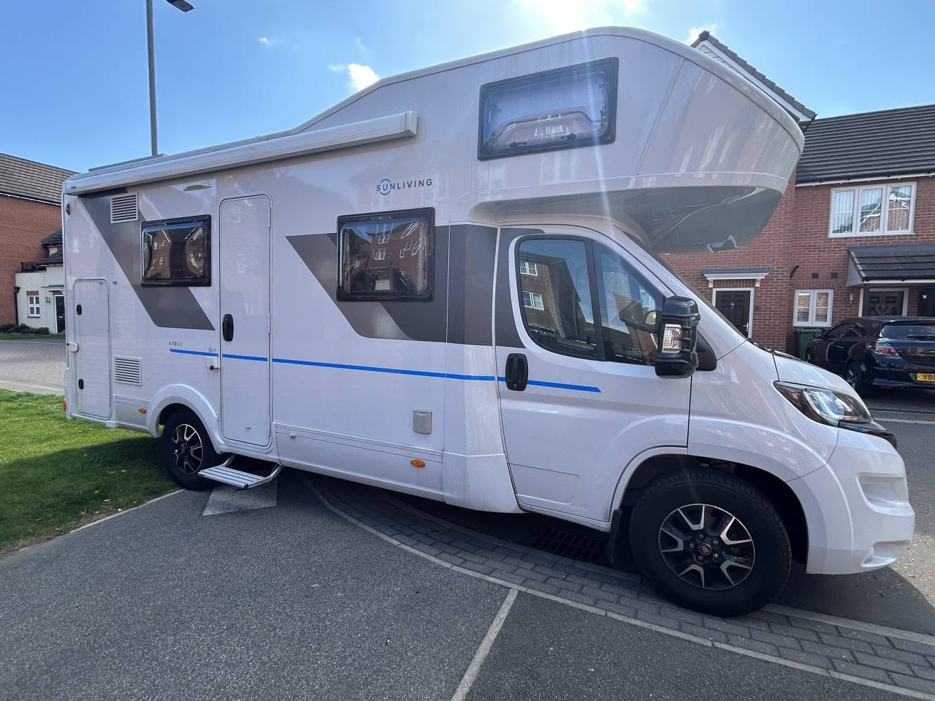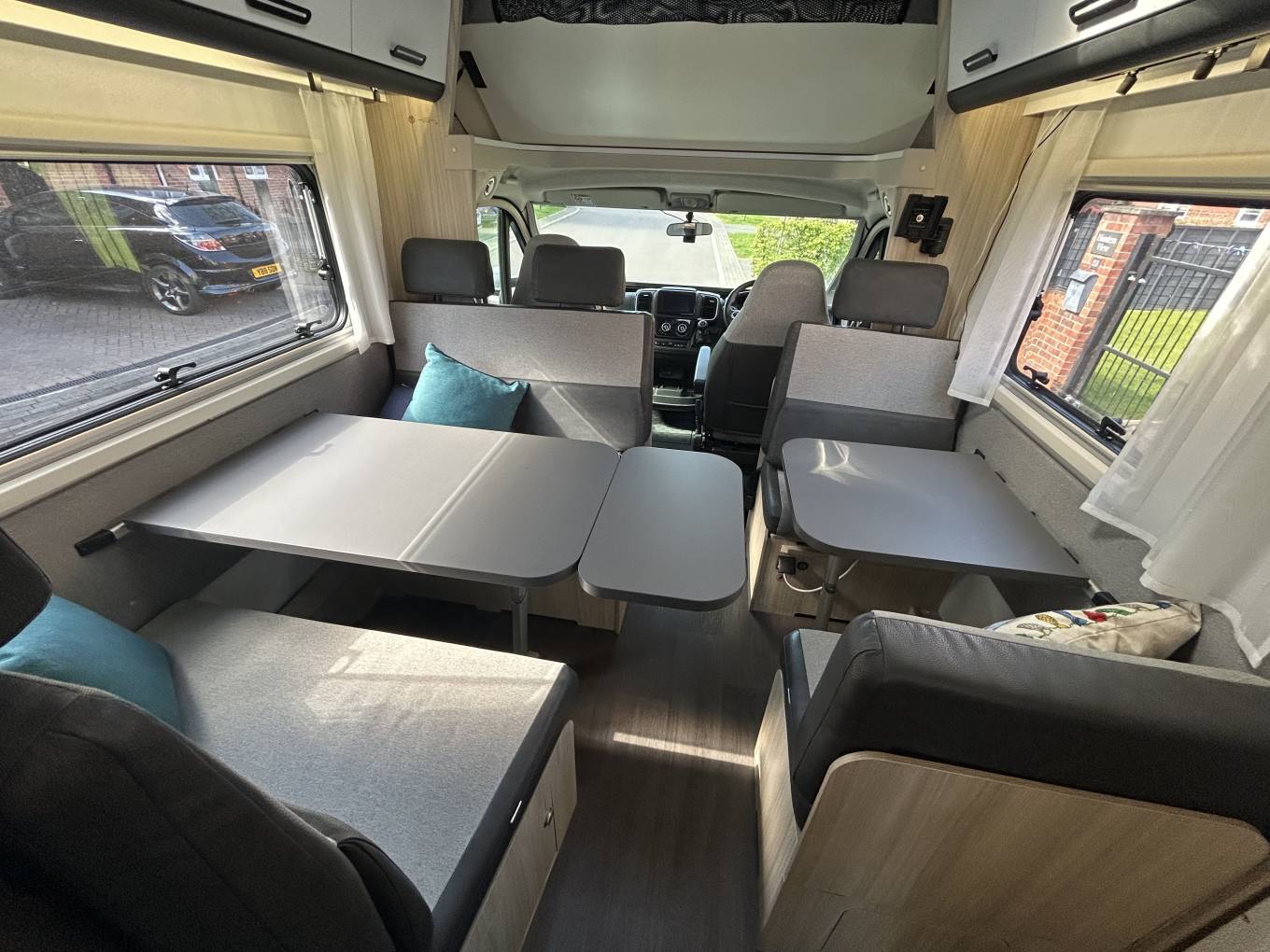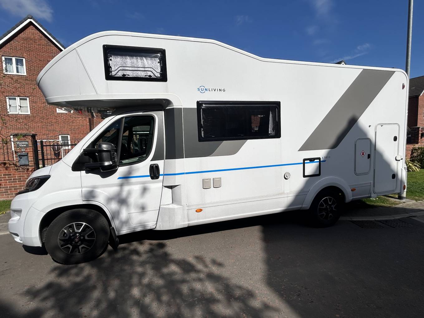 Here we have a Adria Sunliving A70DK, on a Fiat 2.2 Manual, This 7 berth with 7 belts is perfect for a large family to have the adventure of a lifetime. The sleeping arrangement consist of a bunk bed at the rear, over cab bed and the central dining area can be made into a double and single. It is perfect for a smaller family as well as there is plenty space, the kids can stay in bed whilst you enjoy the dining area. The Kitchen area has everything you need to cook up the perfect meal, including a 3 wqy fridge freezer, Gas hob, oven and grill. The wash room has a separate shower cubicle, toilet cassette, large mirror and storage unit, you have everything you need for the perfect drive including cruise control, bluetooth, air con, the built in blinds makes it easy to get privacy. The adjustable table and central dining area is perfect to relax or have a family meal, Stay powered up with the 120w solar panel and the two leisure batteries, the Truma i net ready heating and water system will keep you comfortable along with the habitation aircon is ready for when its a hot day. It will include the 12v TV. The external has had a Diamond coating, access to the rear bunk bed area from the outside gives you a large garage, a large wind out canopy gives you a great outside area. Overall this motorhome is in fantastic condition and can be viewed in Wakefield by appointment only,