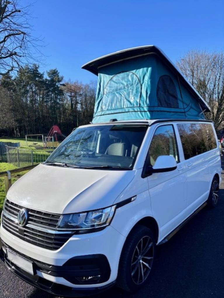 This is an outstanding example of a 4 berth, 4 seatbelt VW elevating roof camper. This 2.0 DSG Automatic has covered only 55k miles from new and is almost unmarked in White paintwork with a brand new Skyline roof with the 3rd and 4th bed option built in. Alloys, reverse camera and apple i play all come as standard and with full VW service history and an MOT until December 2025, this camper is ready to go. Excellent example and based in Kent. More pictures available.