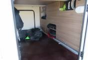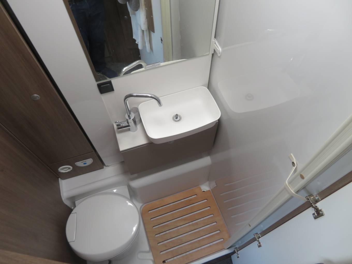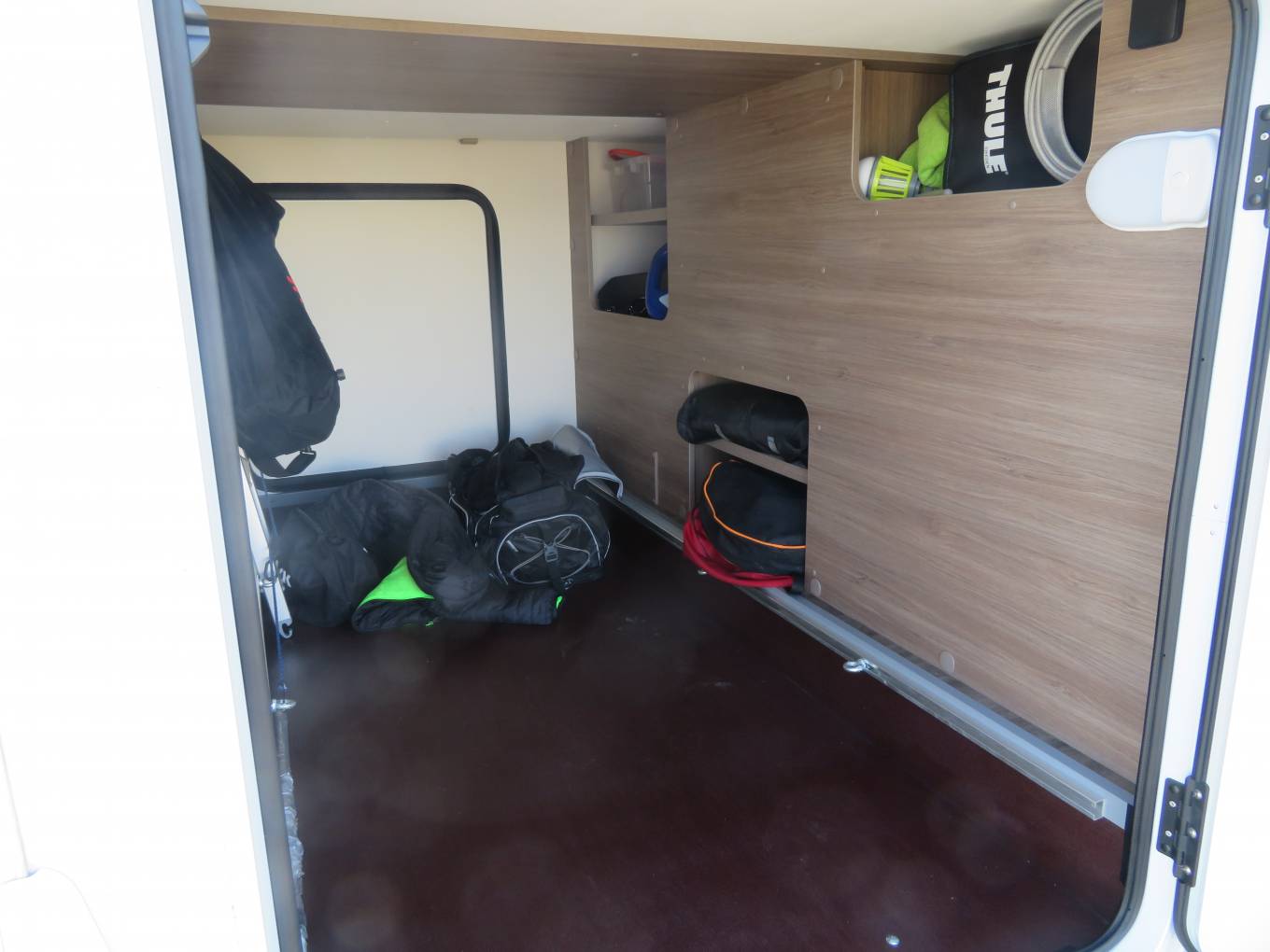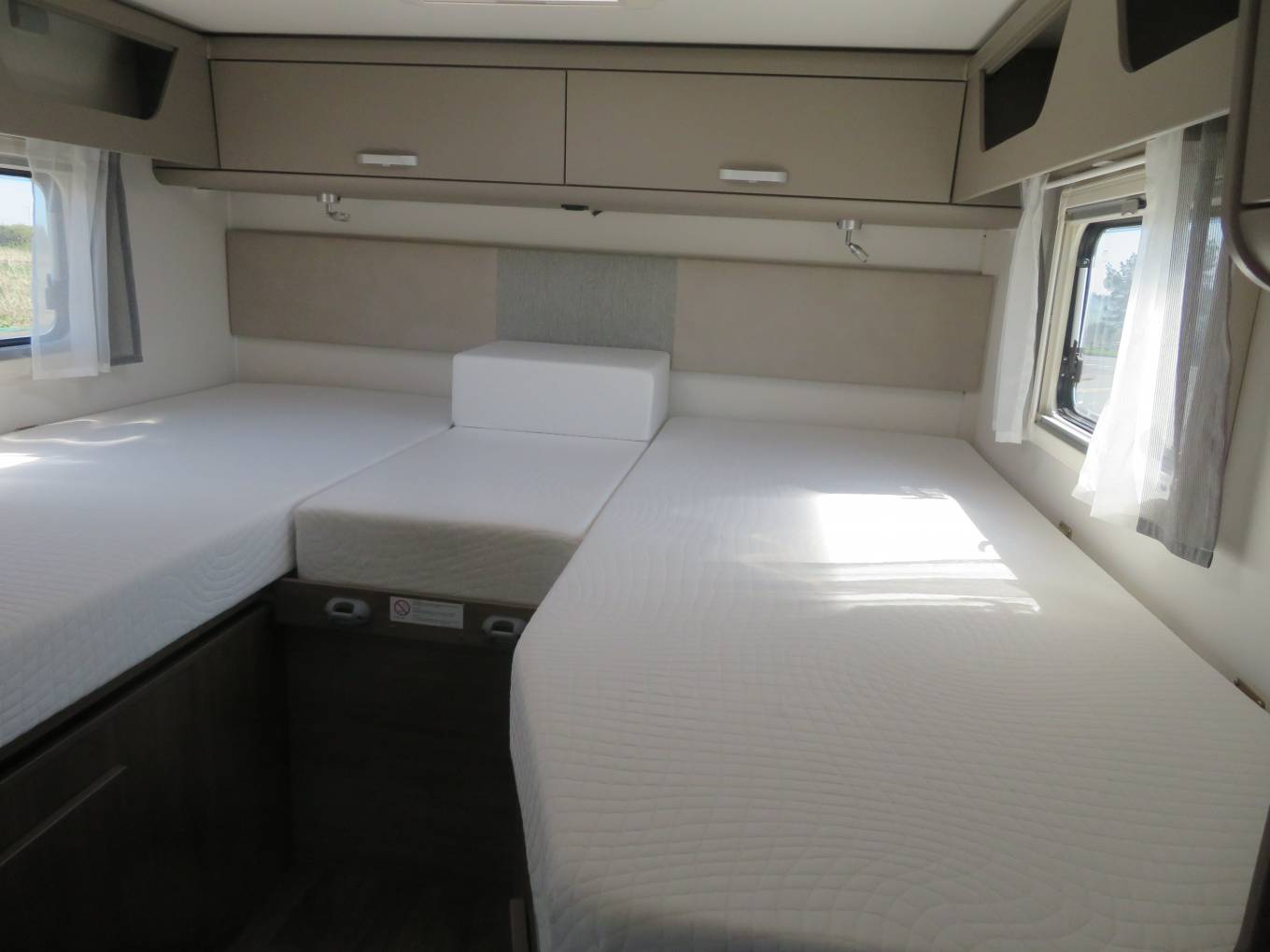 The Carado T338 Pro Edition has everything you need: There is space for everything you need on holiday thanks to the large rear garage and high load capacity, Time for bed: The handy pull-out section can quickly turn the cosy single beds into one large bed, comfortably supported by a wooden slatted frame. The Vario bathroom has you everything you need in a bathroom, all neatly fitted into the most compact of spaces. The Kitchen has everything at your fingertips: Everything is in arm’s reach when cooking in the corner kitchen, meaning you have perfect control of everything on the two-burner hob and Finally the Living area is Luxury on the go: Swivelling driver and passenger seats, cosy seating area and smart storage solutions with wardrobes and overhead cupboards.