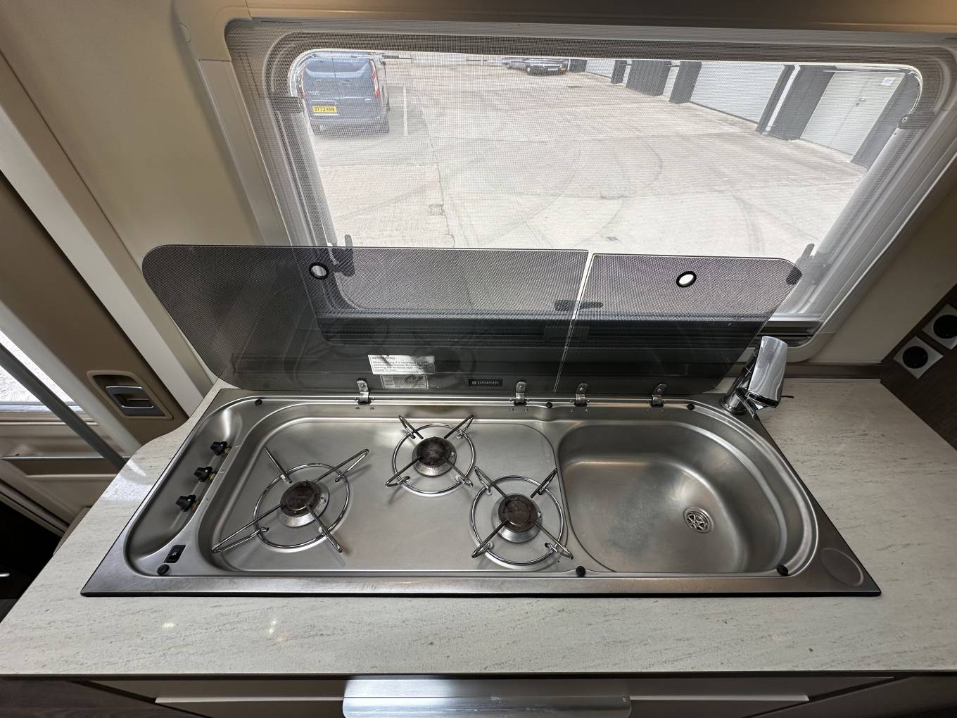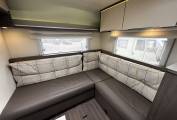 This superb A class Burstner has been built with typical German quality. It comprises a real L shaped lounge with leather seating. this will easily convert to a large double bed and give the Motorhome a real feeling of space. There is plenty of storage space, and a large bathroom with movable shower wall to create a separate cubicle. The kitchen is well equipped with hob, sink and fridge/freezer and oven. The front seats swivel round to create a great social/dining area with the table and further leather seating. Above the cab is a large pull down double bed.