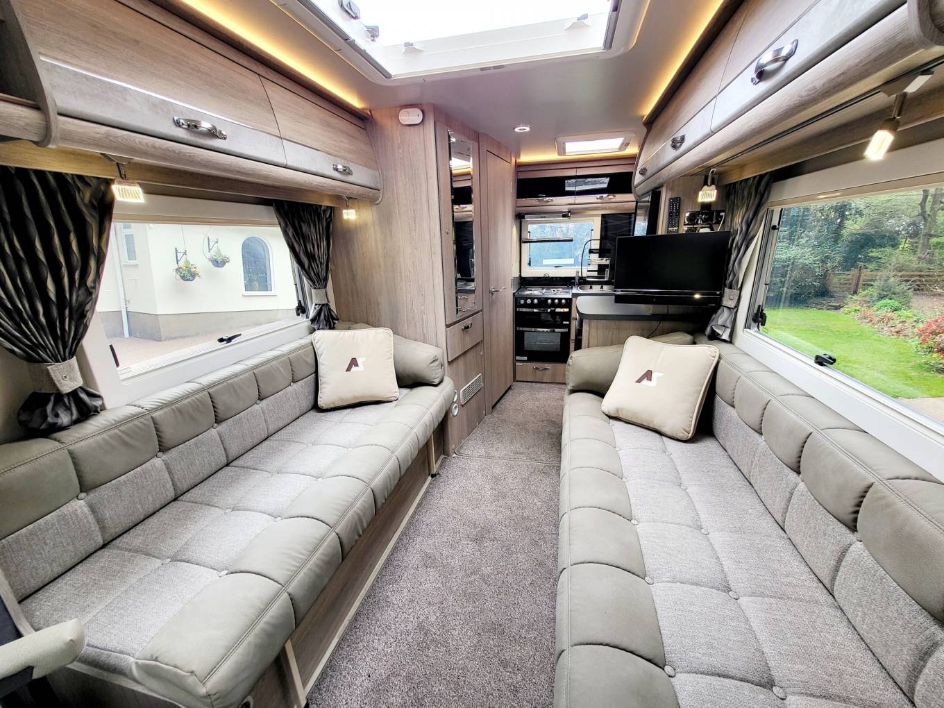 Alloy wheels, external storage locker, external gas BBQ point, Wind awning, electric step, reverse camera, Parking sensors solar panel, cab shades, WIFI, LPG refillable gas, Truma heating & hot water, led lighting and much more. Transferrable two year warranty with mechanical service and habitation service included.