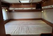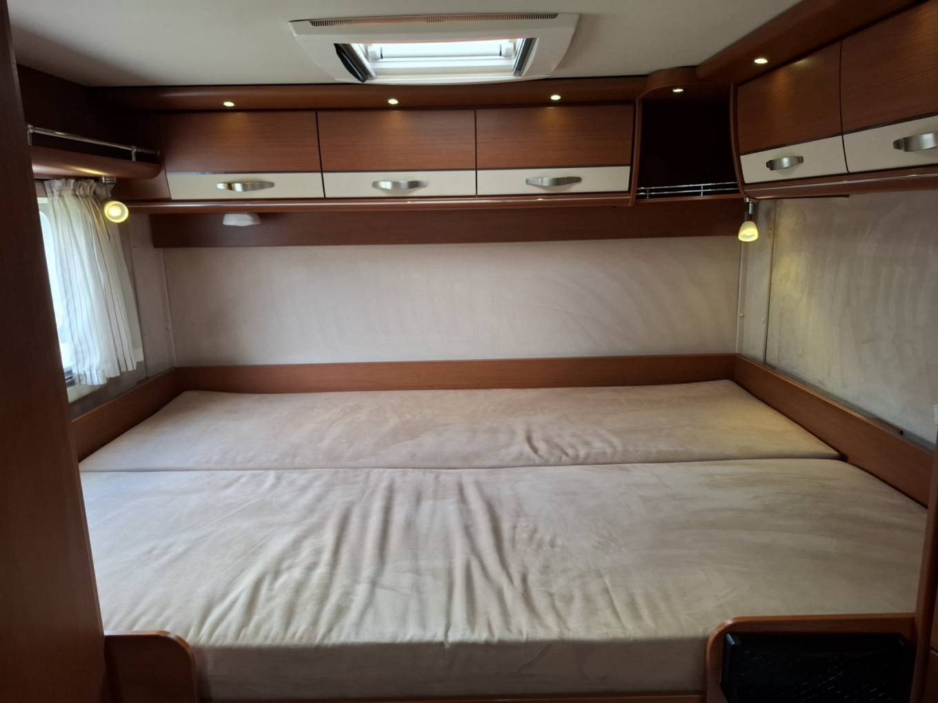 Beyond the kitchen there is storage space either side, followed by an area that can be screened for privacy.This contains a nearside wash room with a toilet, a hand basin, a separate screened shower cubicle opposite, and a raised transverse double berth over the large externally accessed garage at the rear.