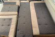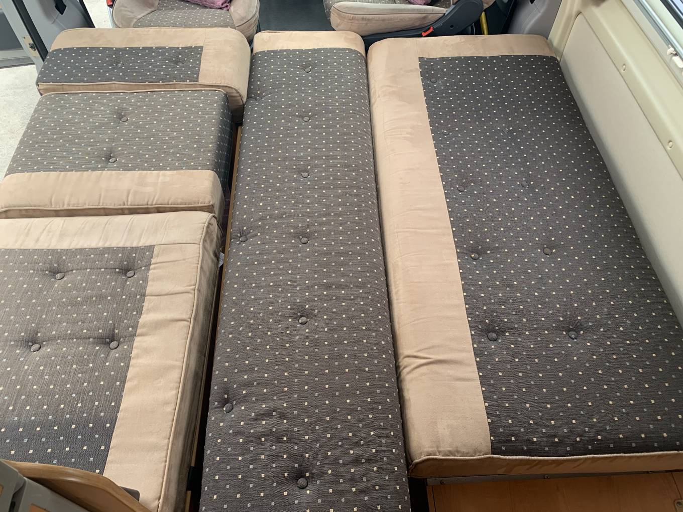 The sleeping arrangements are 2 single beds, using the travel seat on the nearside, so approx. 2 metres and long sofa, or a large double which is approx. 1.70 metres across the full width.