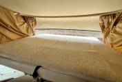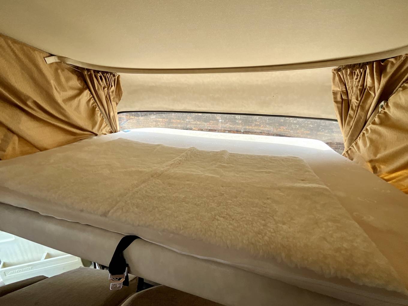 At night, the overcab bed drops and forms a large double. The bench seat can make a single berth and is spacious.