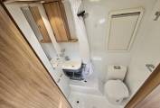 Blinds and flyscreens are fitted throughout, with cab window thermal blinds for privacy. This motorhome also includes a 100W solar panel, twin leisure batteries for off grid use, and a wind out awning canopy for outdoor living. It’s a fantastic example of this popular layout, offering premium comfort.