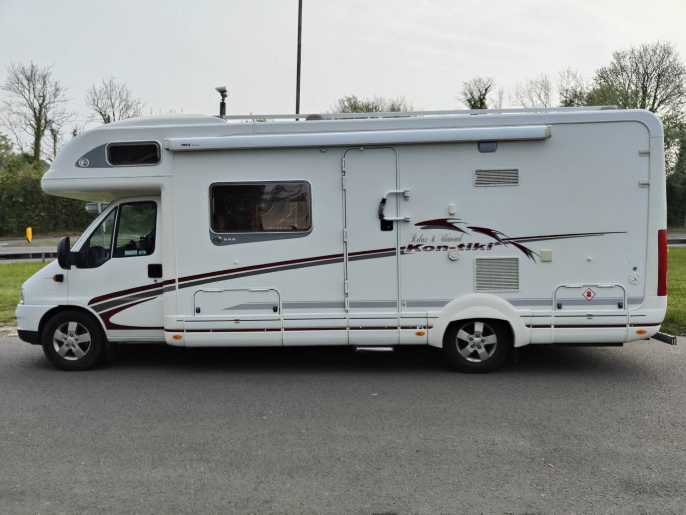 This is a great example of Swifts top of the range Kontiki 655. This 4 berth, 4 seatbelt motorhome is plated at 3850kgs so a c1 licence will be needed. This motorhome features a large rear bathroom, centre kitchen, front dinette with a large double above the cab. Based on the excellent Fiat Ducato cab, this 2.8 jtd model has a 5 speed manual gearbox and cab aircon. Addition spec on this van is 3x solar panels, reverse camera, alarm, habitation mains aircon unit, awning and a towbar. Based on a Alko chassis for increased roadholding. 48k miles from new. Recently serviced with an MOT until feb 2026. Based in Kent and more pictures available. Awaiting Preparation.