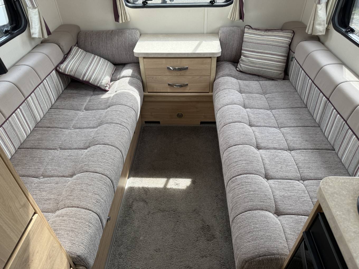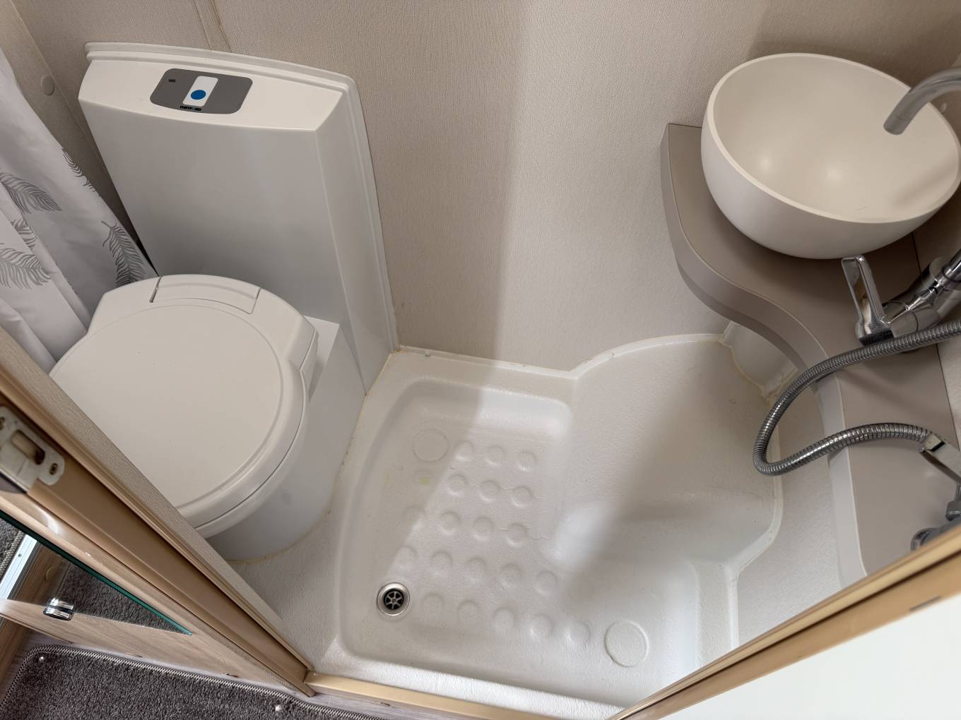 Spacious rear lounge makes up into large double bed mid washroom and well equipped galley kitchen twin swivelling captains seats to the front make this a fully equipped motorhomes under 6mts in length