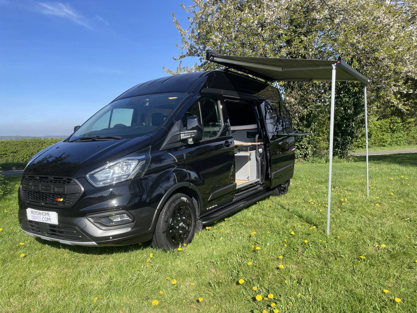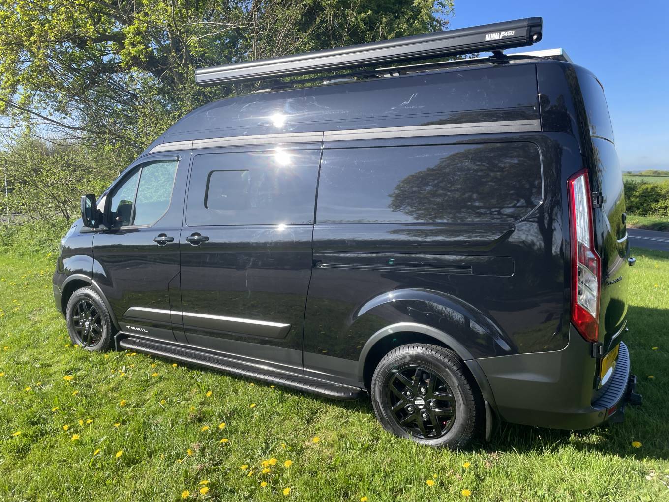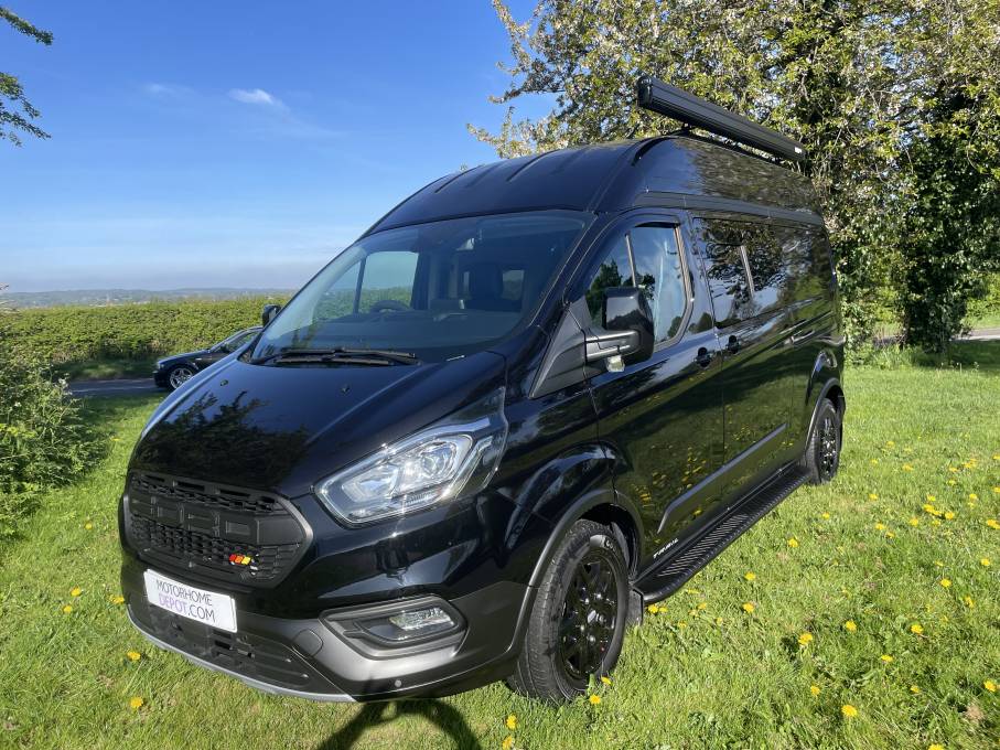 Based on a great looking Ford Transit Custom Trail in Black this professionally converted camper done by Rising sun and Precision Plank for the beautiful woodwork.