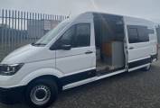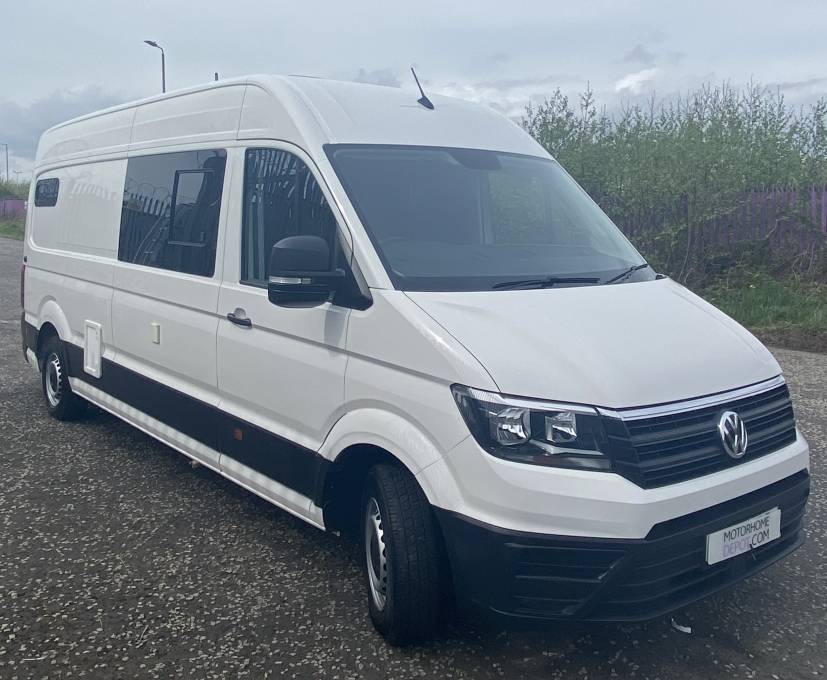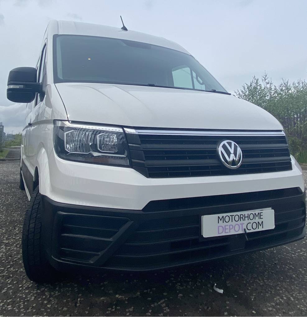 Motorhome Depot is delighted to have on board a VW Crafter Startline 2.2lr Diesel, 2018 in the colour white. This vehicle is very well presented and has been converted to a high standard with quality products, boasting a mini Belfast sink and a sizeable fridge freezer, full shower room with Thetford Toilet. The conversion was carried out by Home from Home conversions in Pontyfract, West Yorkshire.